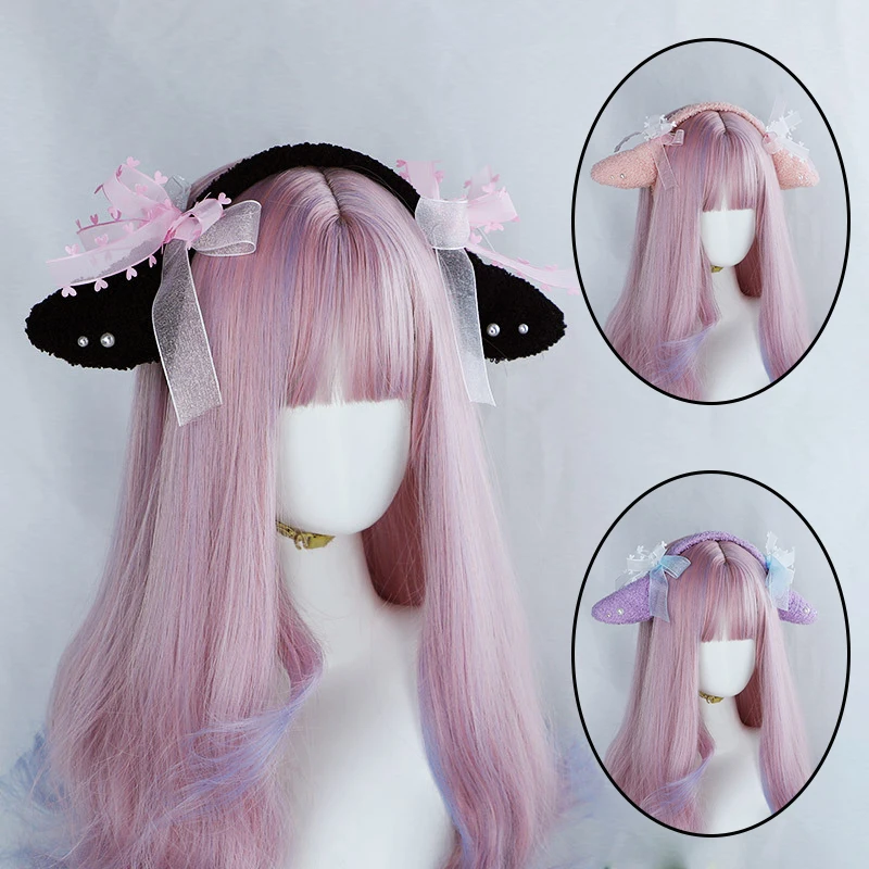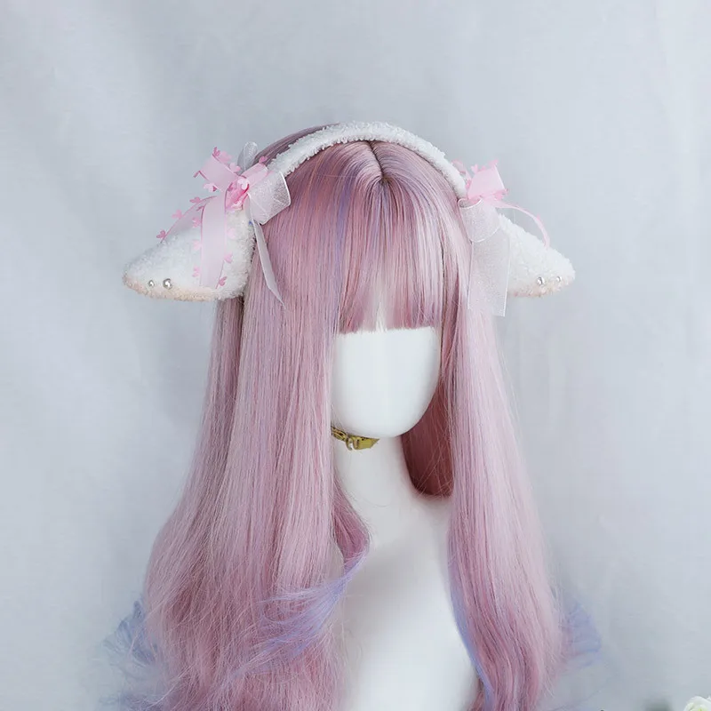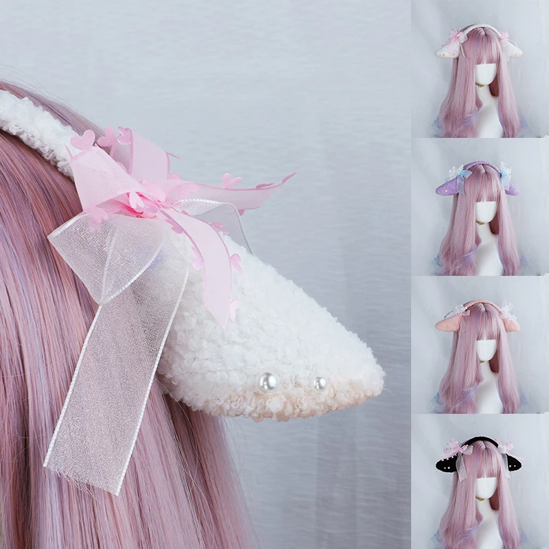 Плюшевая повязка на голову для девочек в стиле Лолиты, милый персиковый бант в форме сердца, плюшевый головной убор с ушками зверей, подарок, ободок из овечьей шерсти, аксессуары для костюмированной вечеринки