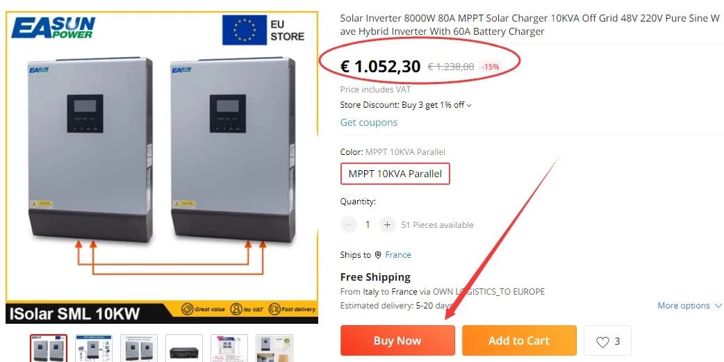 Примечание: Эта модель не включает в себя «параллельные комплекты».Если вы хотите сделать инвертор параллельно, вам нужно купить «параллельные наборы» отдельно. Спасибо.Если вам нужно будет работать параллельно, то, пожалуйста, нажмите на картинку ниже купить SML 8000W/12000W, который может быть однофазный или 3-фазный параллельно