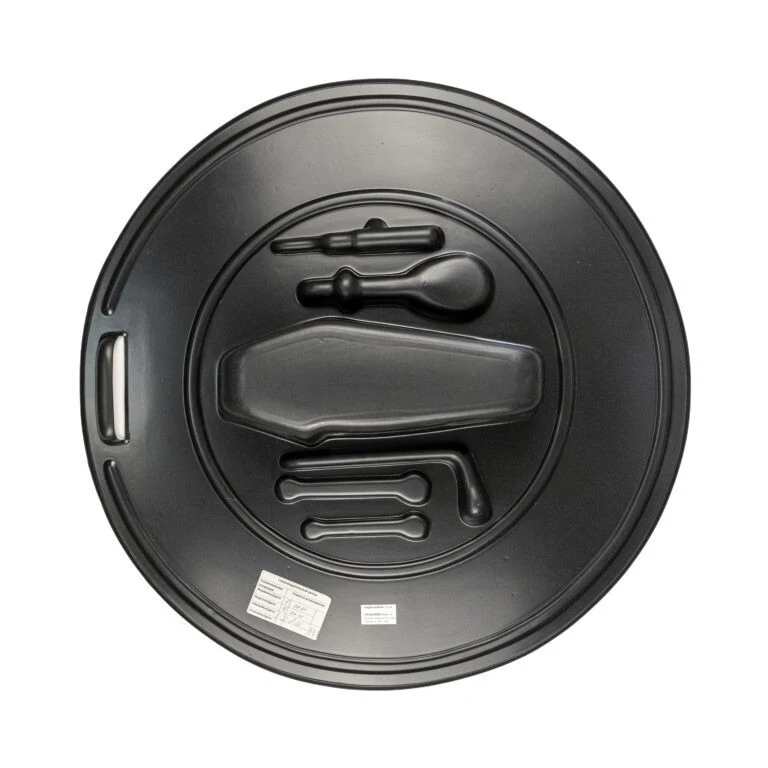 Что умещается в органайзере R13? В изделии есть ниша под заводские инструменты: домкрат, крюк для буксировки и баллонный ключ. Также в органайзере «в колесо» есть место для гаечных ключей М10 и М11.