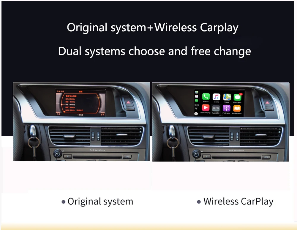 Этот потрясающий набор добавляет полную функциональность CarPlay к существующему MMI, сохраняя все оригинальные функции MMI. Система CarPlay Поддерживает кнопки и управление рулевым колесом и интегрирована с консолью или перчаточным боксом USB.