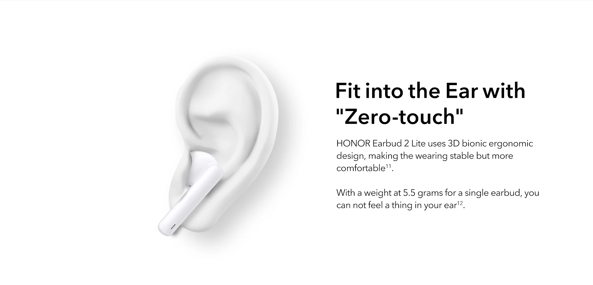 HONOR Earbuds 2 Lite использует 3D бионический эргономичный дизайн, что делает ношение стабильным, но более удобным.