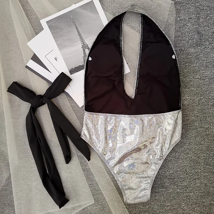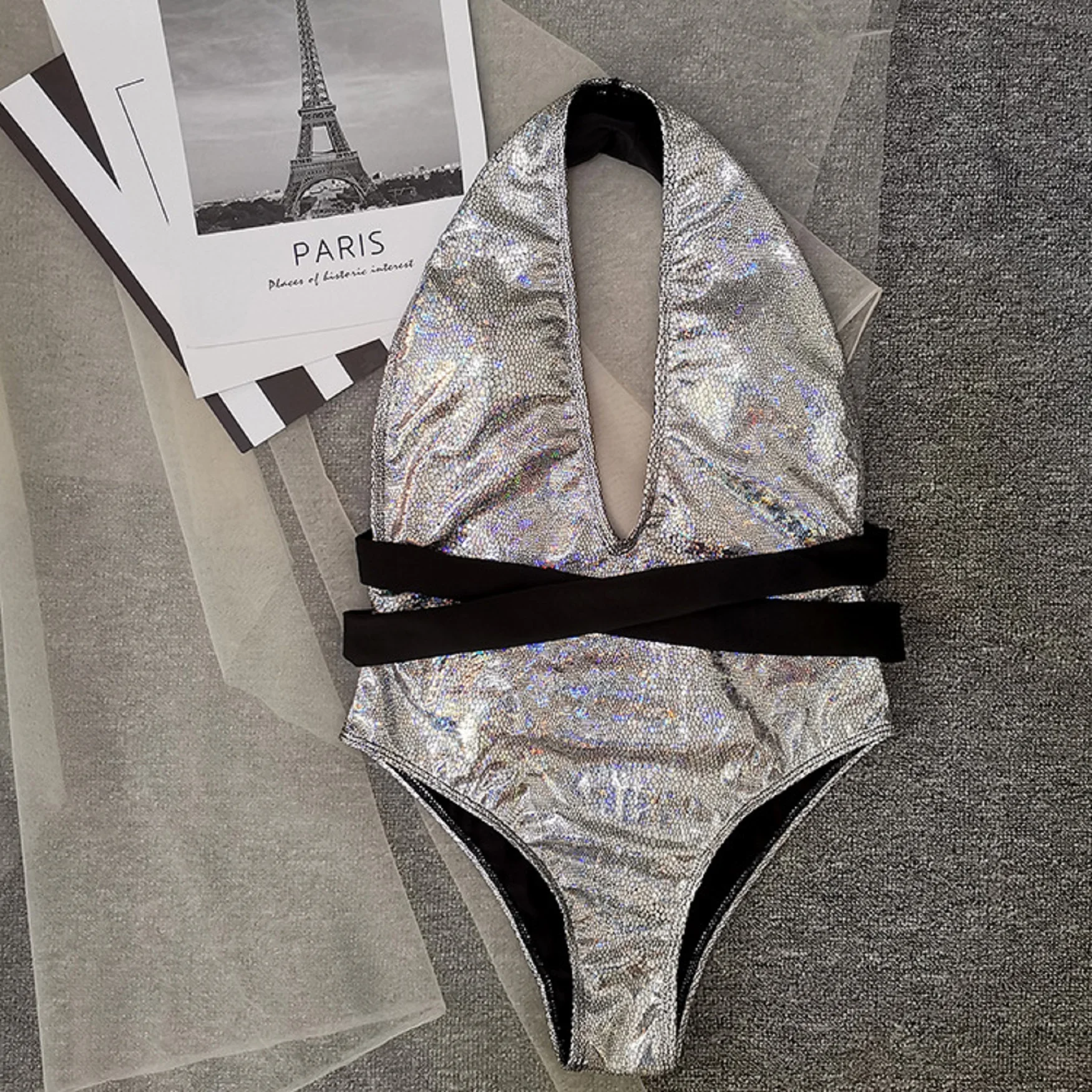Серебряный Цельный купальник, женский купальник с глубоким v-образным вырезом, купальный костюм, монокини, 2022, контроль живота, пляжная одежда, купальный костюм