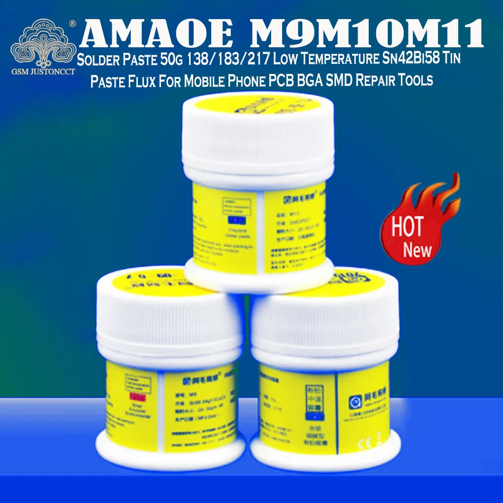 AMAOE M9/M10/M11 паяльная паста 50 г 138/183/217 низкая температура Sn42Bi58 Оловянная паста Флюс Для мобильный телефон PCB BGA SMD Инструменты для ремонта