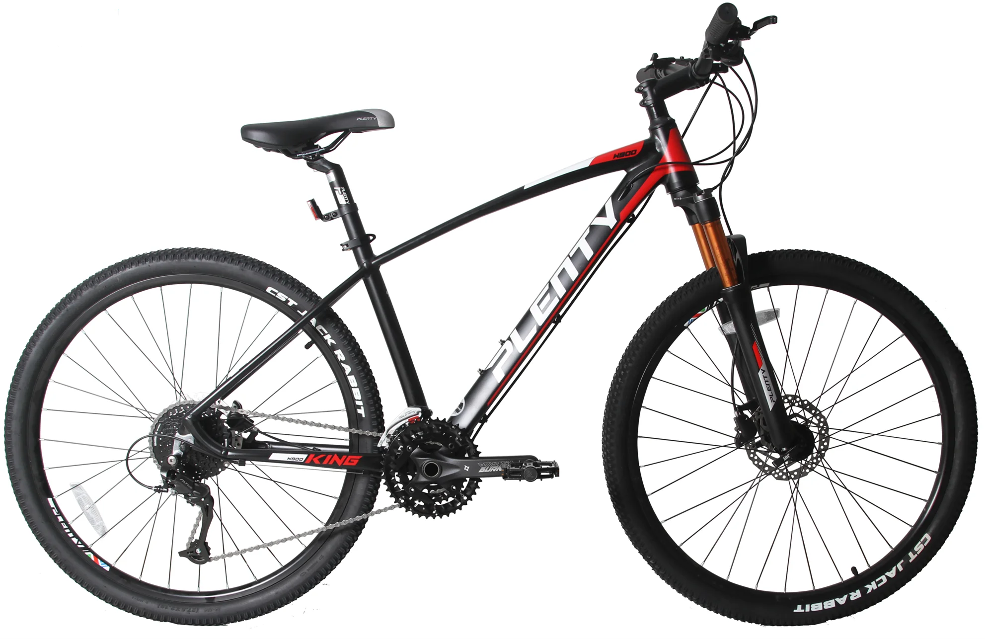 6061 алюминиевый сплав, вилка Подвески с замком, SHIMANO 27Seed dearilleur, CST 27,5x1,95 "шина, масляный тормоз MT200, полое интегрированное цепное кольцо. С быстрым выпуском.