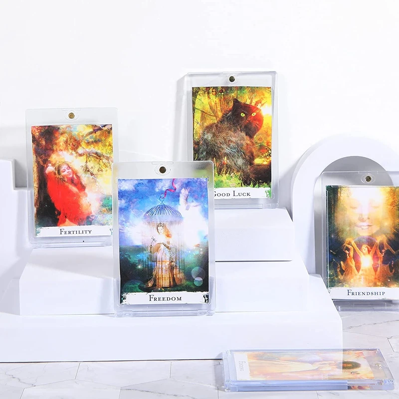 Прочные материалы: Эти Чехлы для торговых карт имеют защиту от ультрафиолета. Поглотитель помогает предотвратить пожелтение карты из-за ультрафиолетового светильник, тем самым защищая вашу карту от выцветания и обесцвечивания, а также сохраняя коллекции карт свежей и полной.