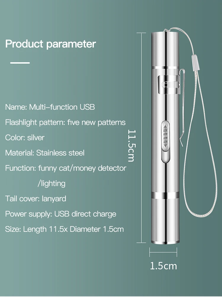 3-в-1 мини красная лазерная указка ручка USB Перезаряжаемый 3 в 1 красный светильник + белый светодиодный фонарь светильник + УФ-вспышка светильник кошка собака игрушка для домашних животных