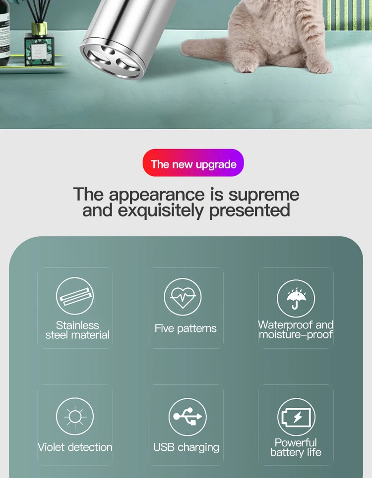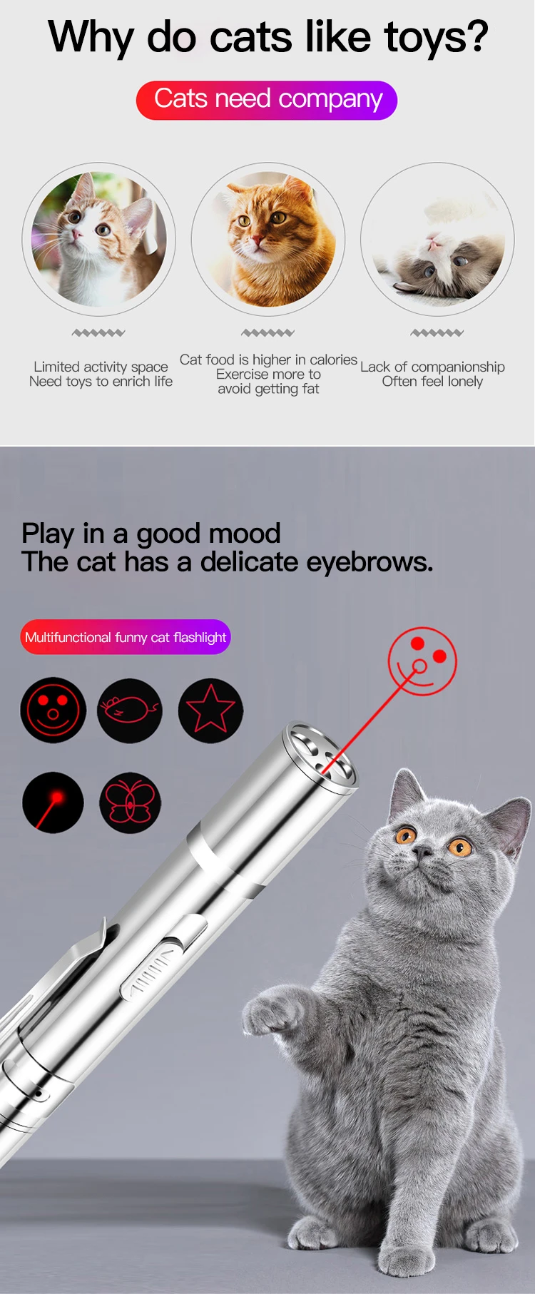 Многофункциональная игрушечная лазерная ручка для кошек и собак. 3 светильник ing Функция: Красный светильник, светодиодный фонарик факел светильник факел и УФ-светильник. 5 моделей красный светильник: красная точка/бабочка/мышь/Улыбка/звезда, более привлекательный для домашних животных кошек.