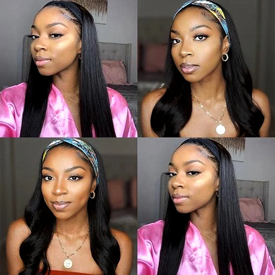 Гладкий парик из человеческих волос, прямой парик с головной повязкой, бразильские парики по акции, парик для женщин, полностью машинный, парик без клея, 20 дюймов, жарин