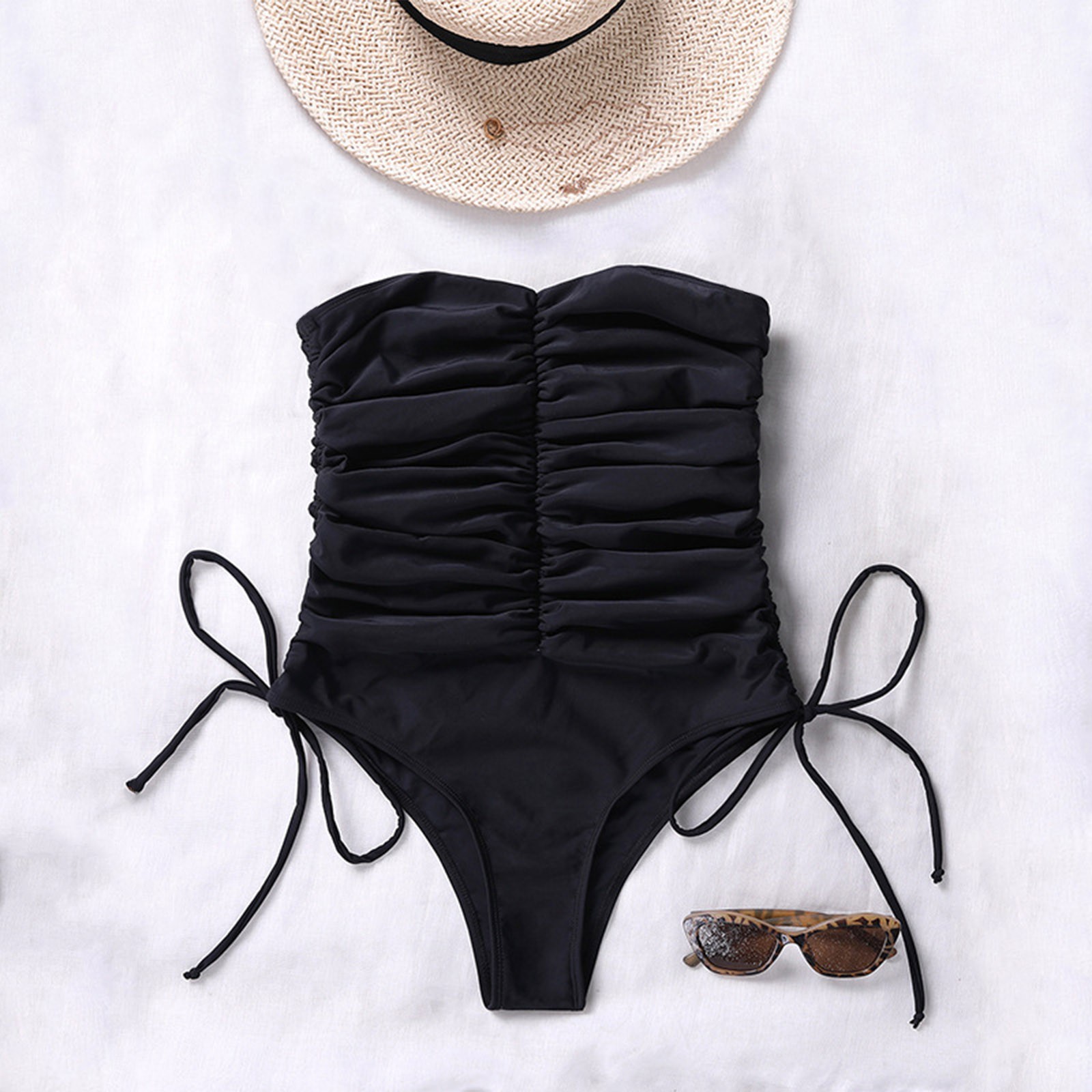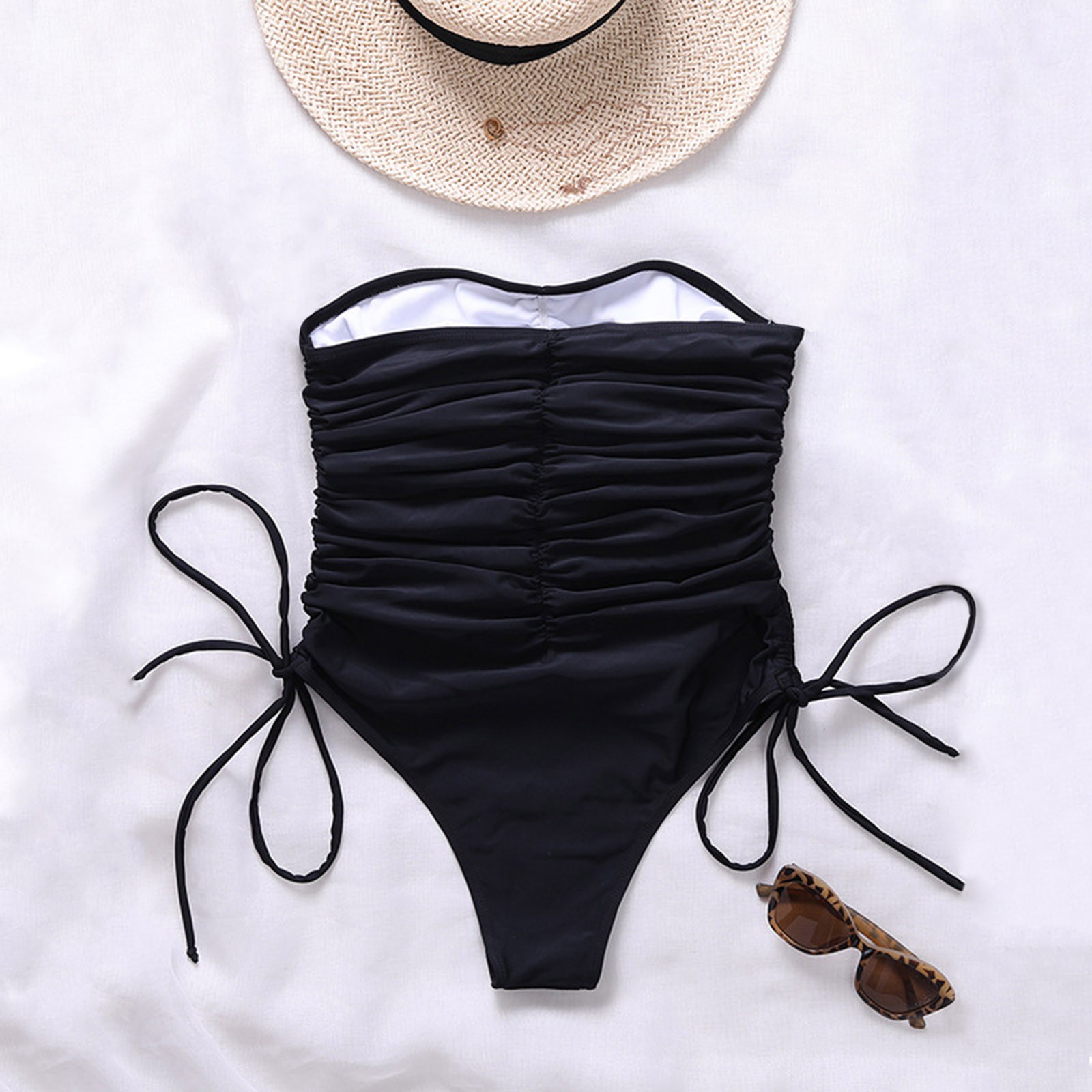 Женский сексуальный цельный купальник без бретелек со шнуровкой и завязками
