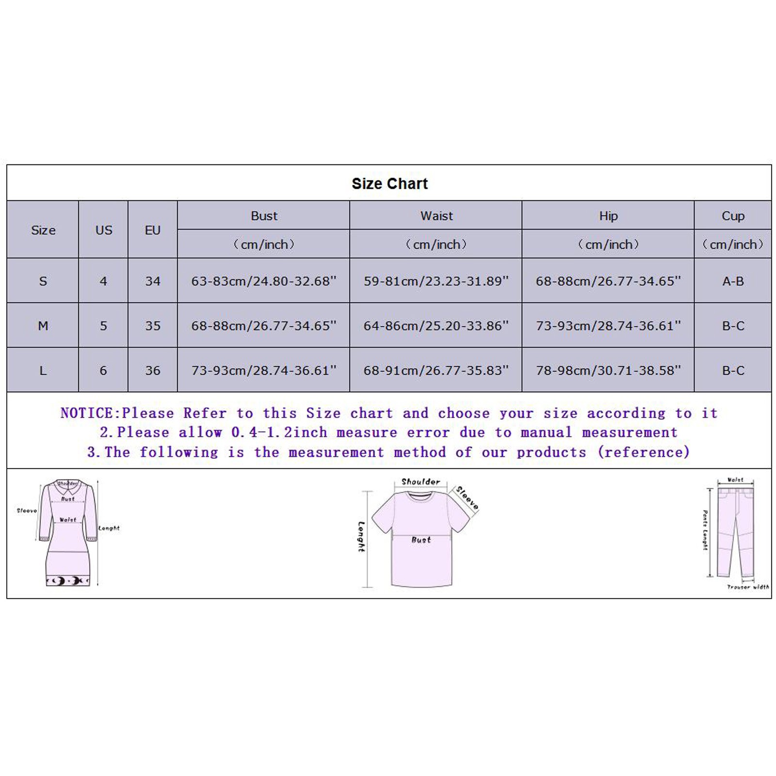 | Размеры | США | ЕС | Бюст | Талия | Бедра | Чашка |