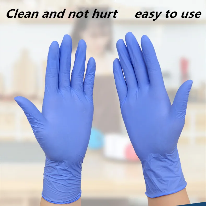 Одноразовые домашние перчатки изготовлены из нитрилового резинового материала, высокого качества, нетоксичные, асептические, здоровые в использовании.
