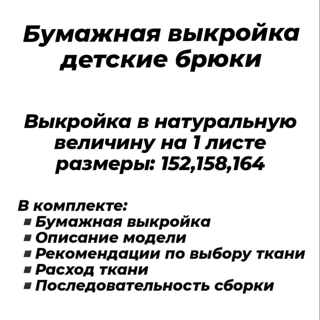 -Выкройка на бумаге, на 1 листе размеры 152,158,164