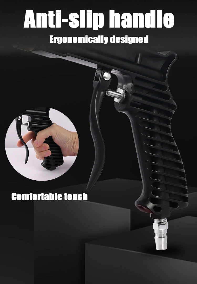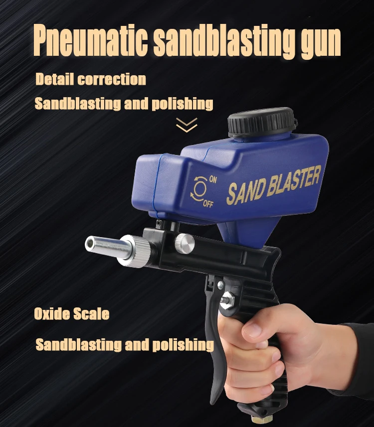2. Pneumatic sandblasting gun has a wide range of uses: such as descaling, residue, rust removal, old parts refurbishment, dead-angle impurities cleaning, atomization, deburring, deburring, carbon deposition, welding slag, paint marks or wear marks, etc.