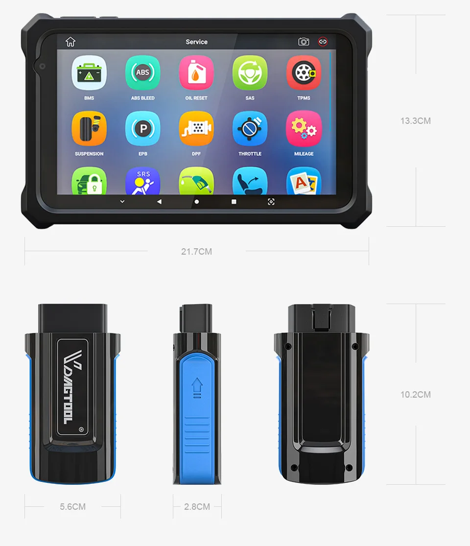 VDIAGTOOL VD900& VDIAGTOOL P80 is an advanced tablet scan tool based on the Android operating system. Consist of tablet and OBD2 connector, this obd2 scanner’s advantages not only lie in its comprehensive functions including Full systems diagnoses, all obd2 functions, various reset features (Oil reset, Engine,EPB/SAS/SRS/BMS/ABS/TPMS/DPF reset,Transmission, ABS, SAS, Air Conditioning, ACC, Audio, Headlight ,Center Lock, ESP,Suspension failures, ect), but it its excellent performance in advanced hardware, faster and more accurate diagnosis.