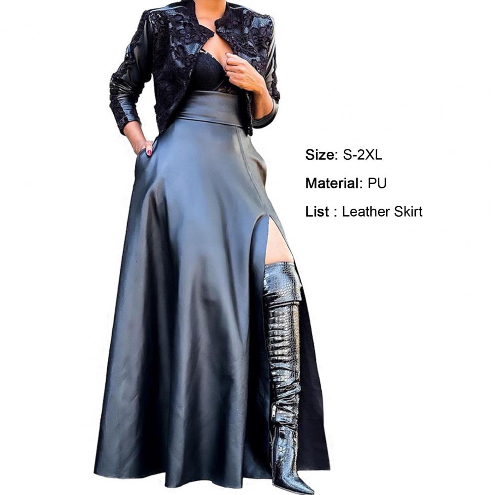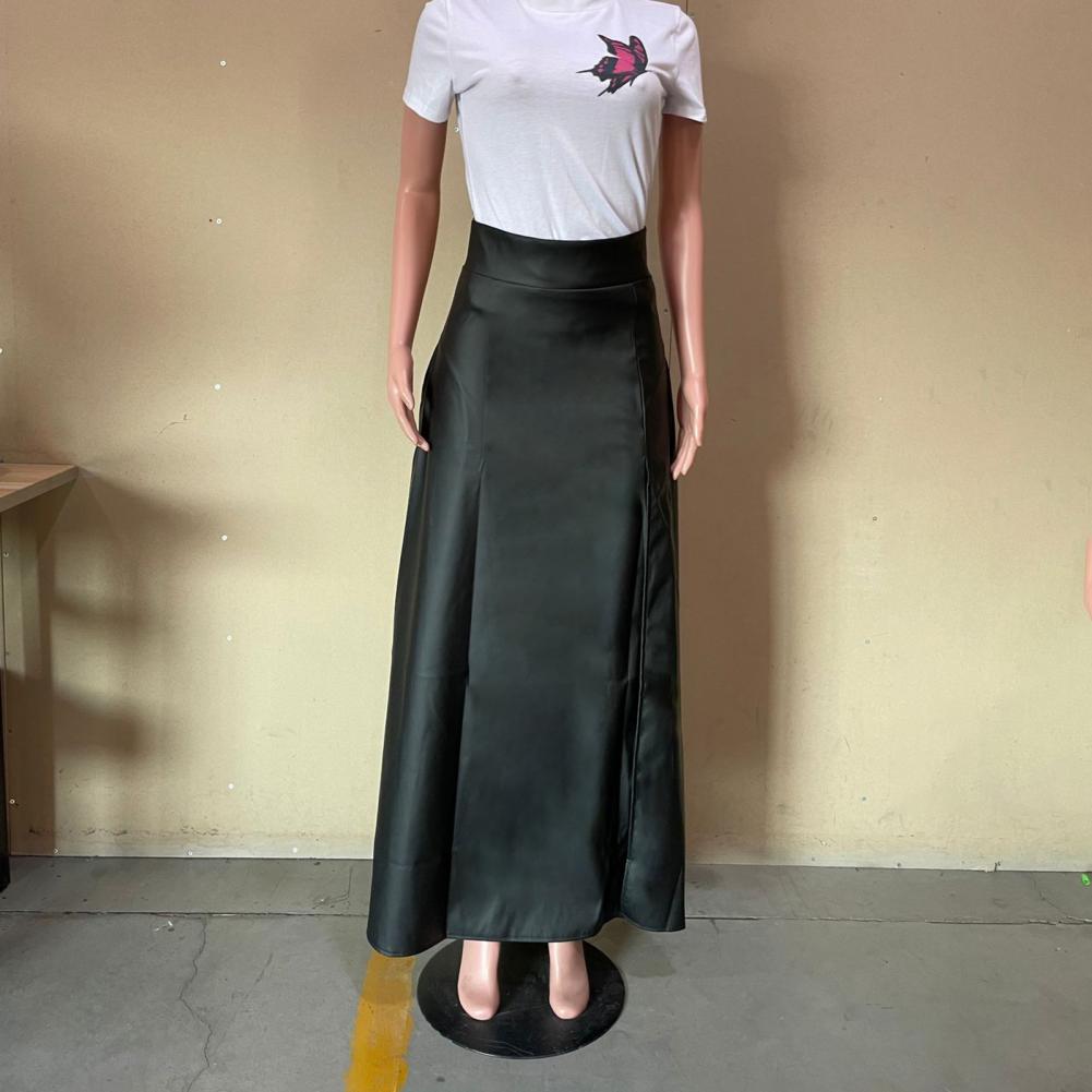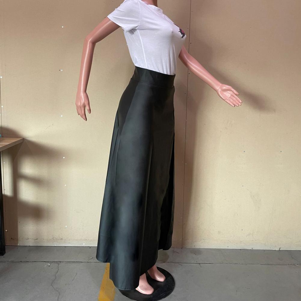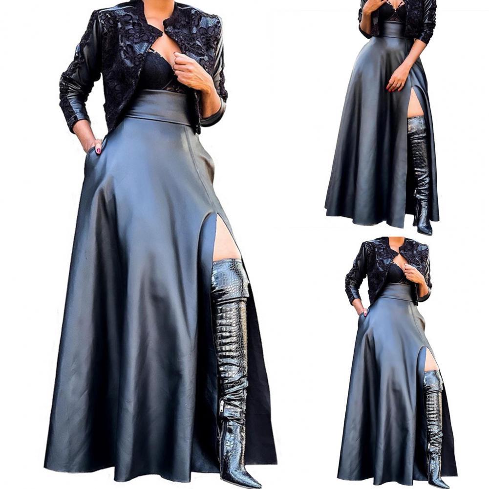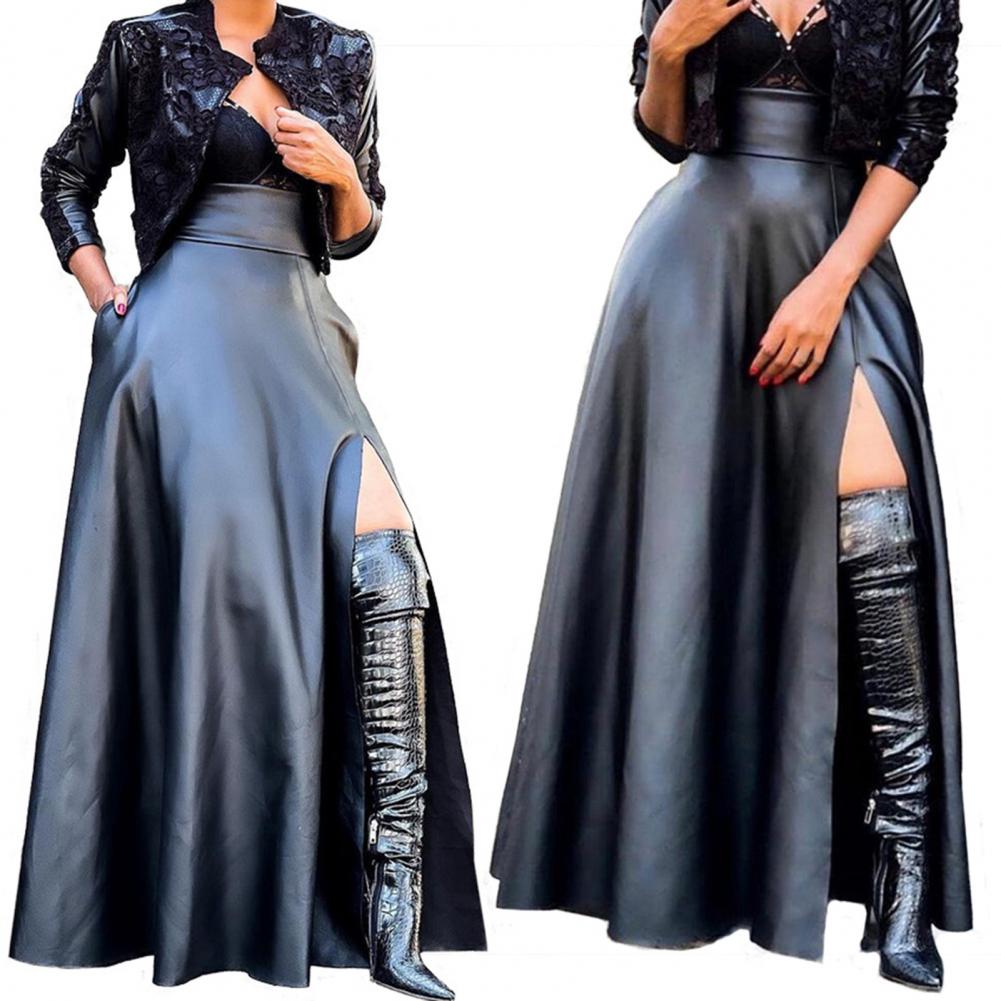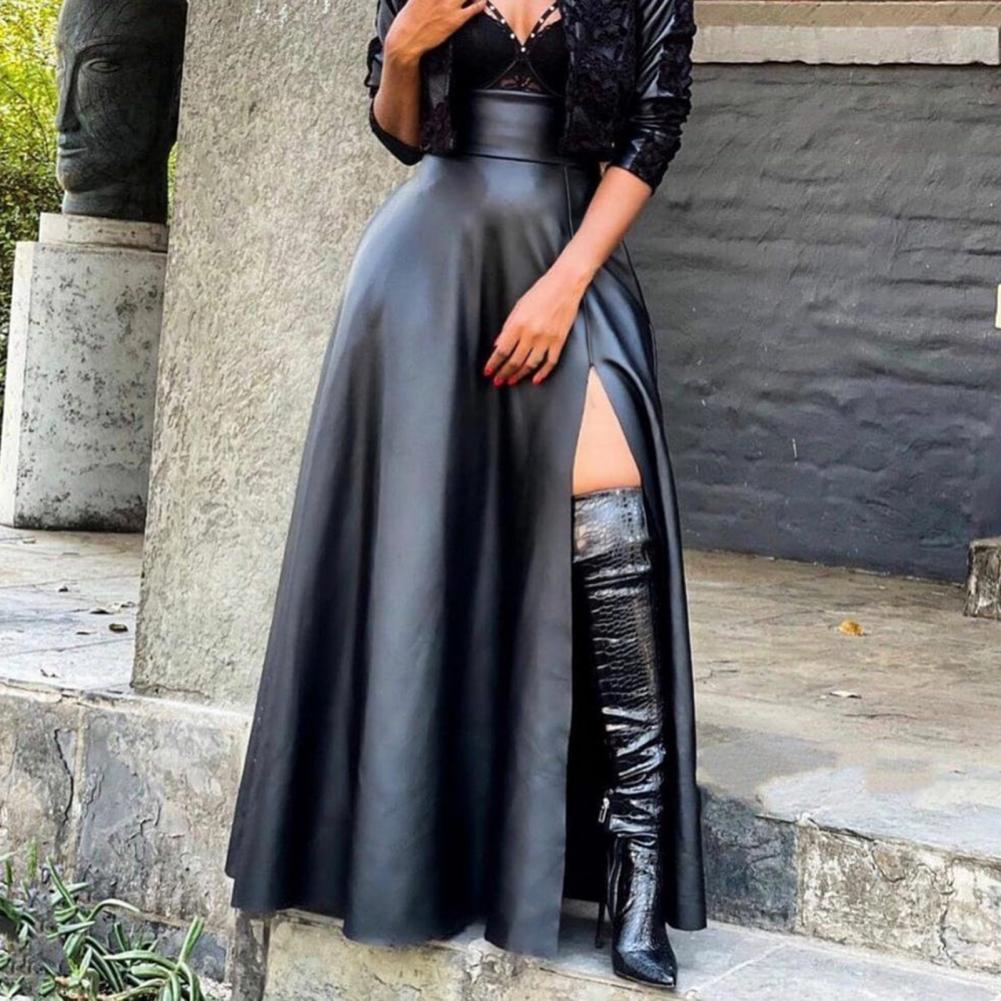 Модная женская юбка с высокой талией, асимметричная юбка макси из искусственной кожи с разрезом сбоку для повседневной носки