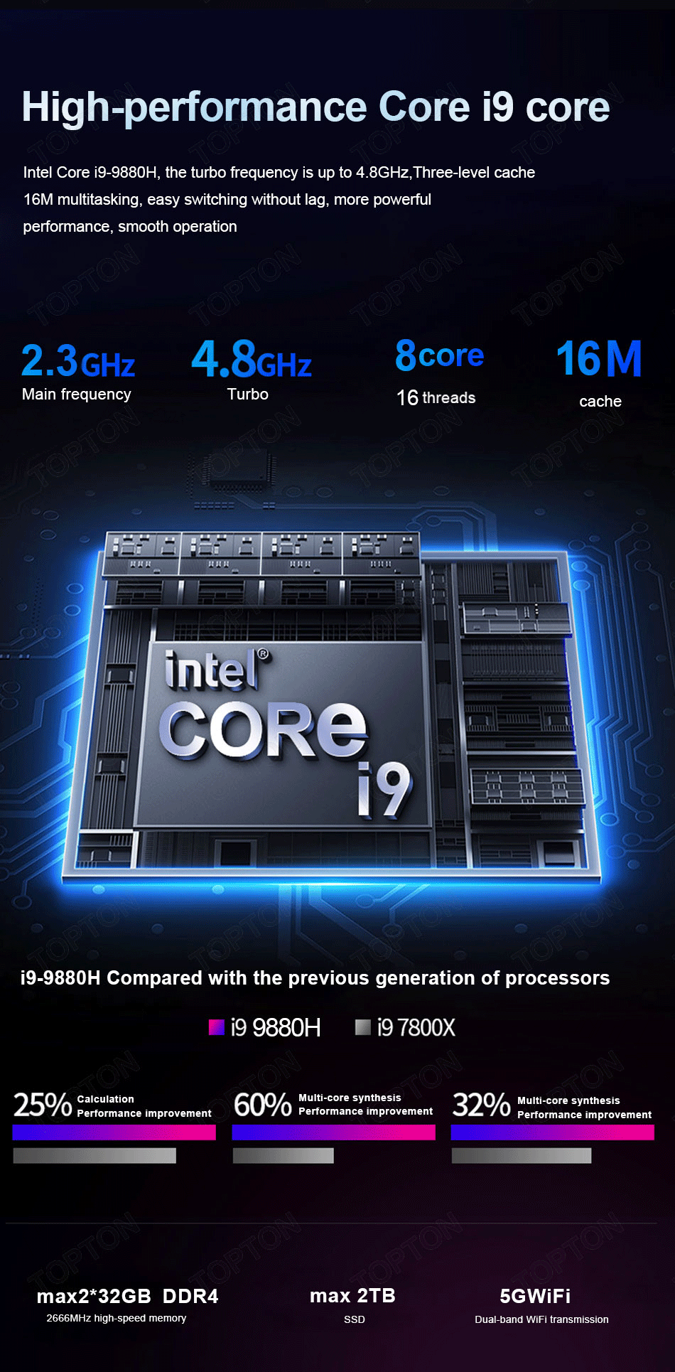 1. Продвинутый мощный процессор Intel core i9/i7 6 ядер 12 нитей для игр и дизайна;
