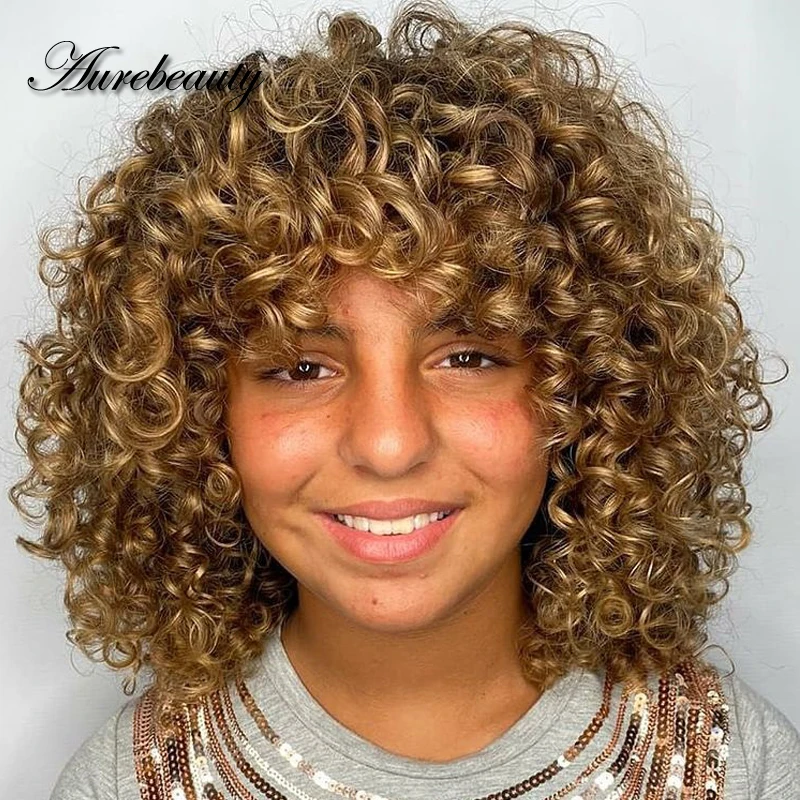 Медовый блонд, парик из синтетических волос, цвет Омбре, дешево, короткий парик из парика, афро, кудрявый, кудрявый, полный парик с челкой, тупый