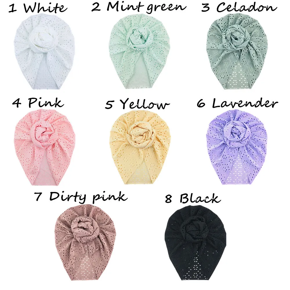 16 шт./лот, модные летние шапки-тюрбан с ушками для малышей, 8 видов цветов шапочки для новорожденных мальчиков и девочек, От 0 до 3 лет, шапки-шарфики для новорожденных
