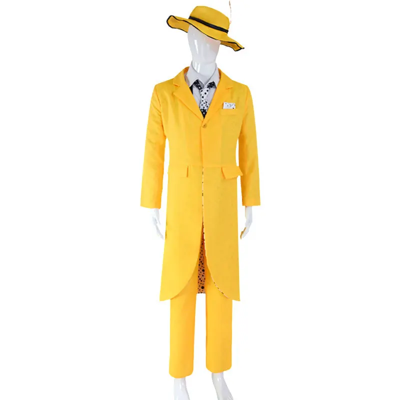 2021 NEW The Mask Jim Carrey Cosplay Costume Monster Yellow Uniform Suit Outfits Hat Halloween Carnival Costumes For Adult