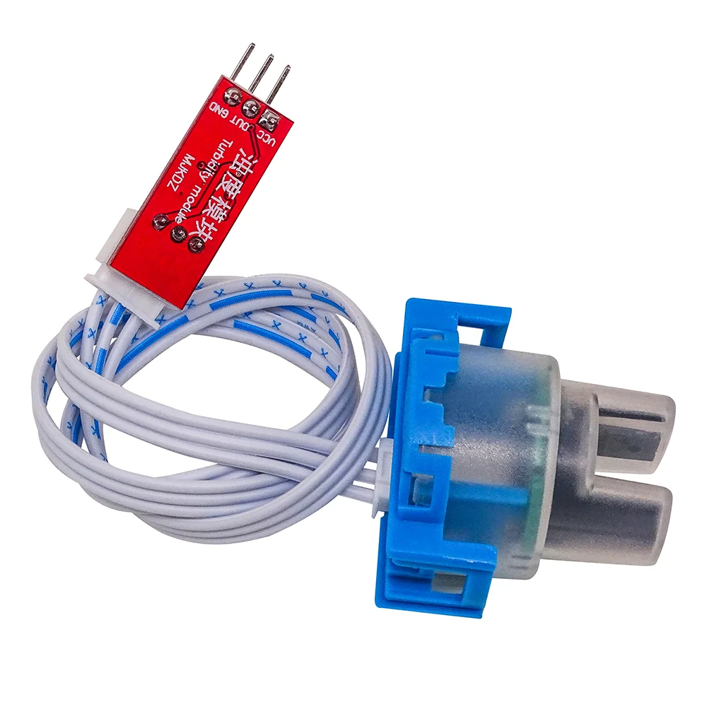 Коррекция:Из-за индивидуальных различий в датчиках мутности, окружающем светильник или компенсации температуры. Чтобы получить более точное значение мутности, калибровка должна быть выполнена до измерения. Конкретный метод работы описан ниже.Шаг 1: Установите Датчик Мутности для питания модуля датчика. Откалибровать с помощью стандартного раствора 0 NTU (или очищенной воды или дистиллированной воды близко к 0 NTU);Шаг 2: запишите значение температуры раствора для калибровки тока и запишите его в качестве Т-теста в условиях окружающей среды датчика (постарайтесь избежать ошибки, вызванной интенсивностью светильник); измерьте и запишите выходное напряжение модуля датчика в качестве теста U.Шаг 3: рассчитать разницу в напряжении ΔU, вызванную разницей температур. Измеренный тест T заменяется в формулу коррекции температуры.△U = -0.0192X (T test -25)Шаг 4: рассчитать стандартное значение напряжения 0NTU Стандартное решение (25 °C) U25 °C.U25 °C = U тест-△UШаг 5: рассчитать значение K и заменить расчетное стандартное значение напряжения U25 °C в стандартную формулу кривой.K = 865.68XU25 °CШаг 6: исправьте стандартную формулу кривой. Замена расчетного K в стандартную формулу кривой.TU =-865.68XU + K5. Сортировка мутности с помощью аналоговых сигналовКалибровка уровня мутности может быть выполнена с растворами различной степени мутности.Использование цифровых сигналов:Выберите определенный раствор контраста мутности и отрегулируйте ручку потенциометра в положение, где светильник индикатора D1 просто горит (т. Е. Порог высоких и низких уровней), чтобы завершить настройку порога. Порт DO модуля датчика подключен к порту ввода/вывода MCU для определения выходного сигнала или подключен к цепи внешнего привода для привода других устройств.Меры предосторожности:1. Верх датчика мутности не является водонепроницаемым. Запрещено полностью бросать Датчик Мутности в воду во время использования. Поверхность воды не должна проходить соединение между верхней крышкой и оболочкой. Датчик заставит датчик сгореть, когда он попадет в воду.2. Диапазон длины волны датчика фотодиодный приемный светильник (500 ~ 1050nm). Длина волны Дневной светильник или светильник дневного света светильник Светильник линия повлияет на получение датчика фоторезистор и влияет на выход измерения. Дневной светильник или прямой светильник увеличат погрешность измерения датчика, и датчик должен быть защищен от дневной светильник или прямой солнечный светильник.3. Корпус сенсорной головки должен быть чистым, чтобы избежать обструкции измерений, вызванной загрязнителями.