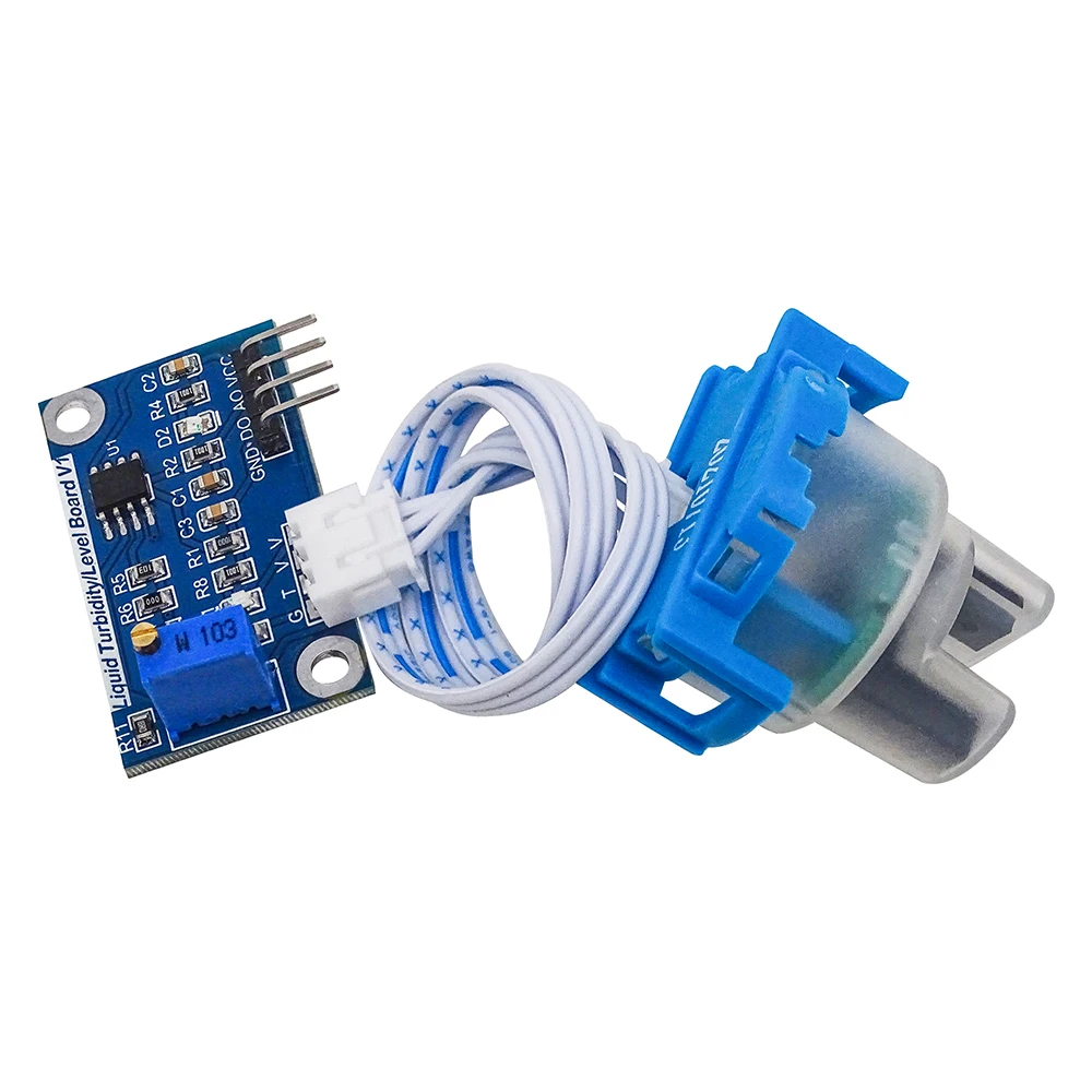 Описание: Мутность воды относится к степени мутности, вызванной взвешенным веществом, таким как осадок, глина, органические вещества, планктон и микроорганизмы, содержащиеся в воде. Датчики мутности промышленного класса или турбидиметры являются дорогими и не дорогостоящими в дизайне электроники; Поэтому мы выбрали Датчик Мутности, который широко используется в стиральных машинах и посудомоечных машинах бытовой техники. Датчик использует оптический принцип, чтобы всесторонне определить мутность коэффициента пропускания и рассеяния в растворе. Внутри датчика находится инфракрасная пара трубок. Когда светильник проходит через определенное количество воды, передаваемый светильник зависит от степени загрязнения воды. Чем больше грязная вода, тем меньше светильник передается. Светильник, принимающий конец, преобразует интенсивность передаваемого светильник в соответствующую величину тока, а передаваемый светильник большой, и ток большой, и передаваемый светильник маленький, И ток небольшой.Модуль датчика мутности преобразует выходной сигнал тока датчиком в сигнал напряжения и выполняет обработку данных преобразования AD с помощью микрокомпьютера с одним чипом. Модуль имеет аналоговый и цифровой выходной интерфейс. Аналоговое количество может быть отобрано преобразователем микроконтроллера A/D, чтобы узнать текущее загрязнение воды. Цифровое количество может быть отрегулировано потенциометром на модуле. Когда мутность достигает установленного порога, индикатор D1 будет освещен, выход модуля датчика изменится от высокого уровня до низкого уровня, и микроконтроллер будет контролировать изменение уровня. Определите, превышает ли мутность воды стандарт, тем самым оповещая или связывающая другое оборудование. Модуль по низкой цене, удобен в использовании, высокая точность измерений, и используется для измерения степени загрязнения воды стиральных машин, посудомоечных машин и т. д.; он также может использоваться для контроля промышленных объектов, сбора сточных вод и других случаев, требующих обнаружения и контроля мутности.Производительность параметров:- Рабочее напряжение: 5,00 V DC