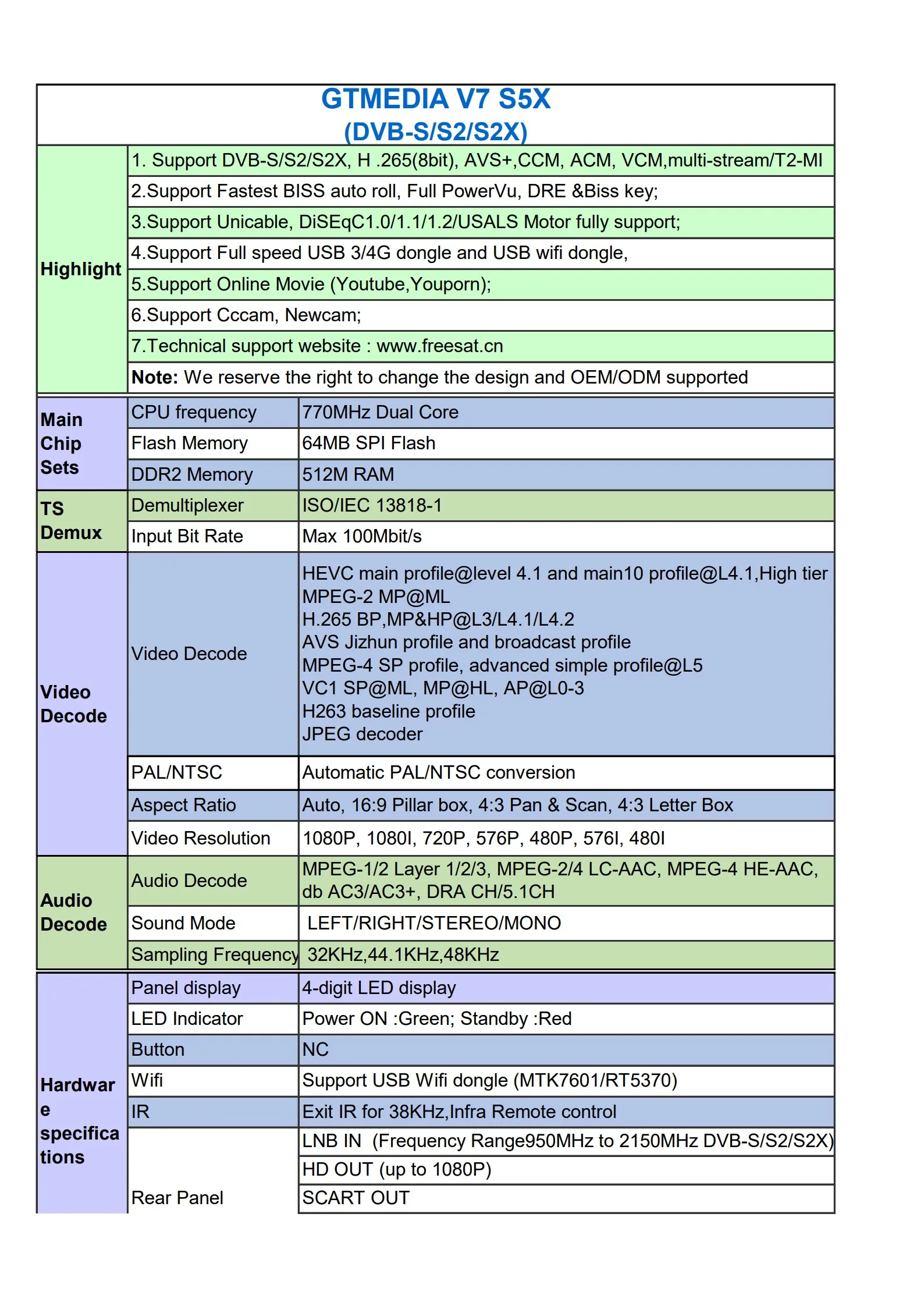 1. Поддержка DVB-S/S2/S2X, AVS +,VCM/ACM/multi-stream/T2MI