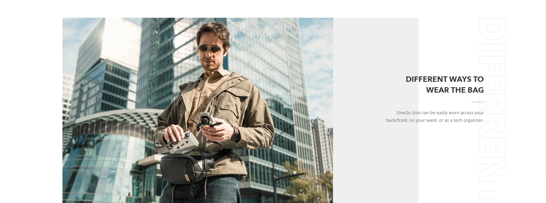 Solo может работать как грудь, поясная сумка или как технологичный мешок, чтобы хранить его в рюкзаке, отстегнув плечевой ремень в переднем кармане.