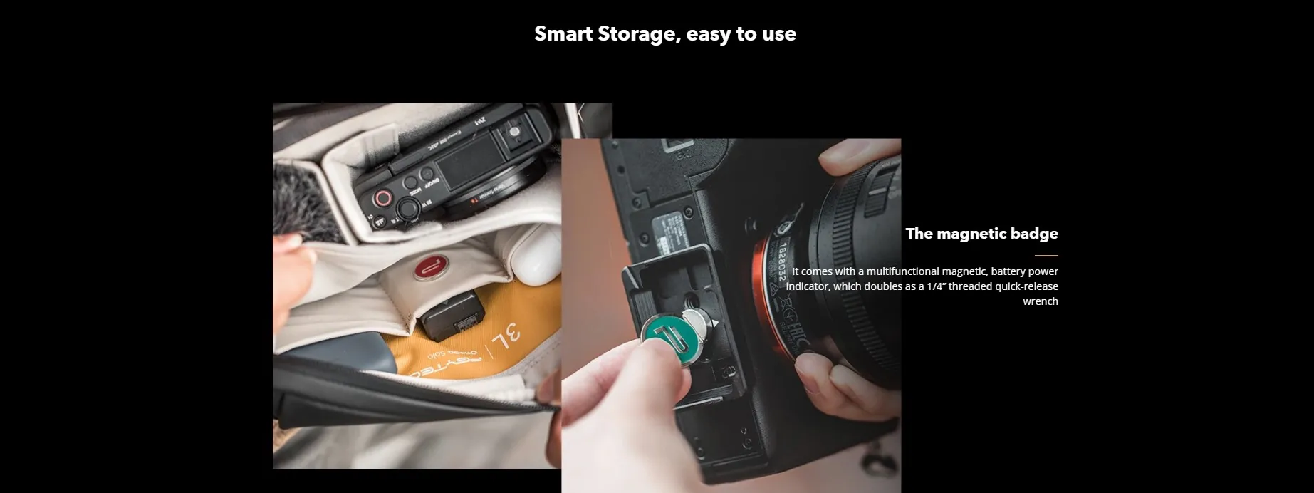 Магнитный значок служит индикатором заряда батареи и быстрым гаечным ключом.
