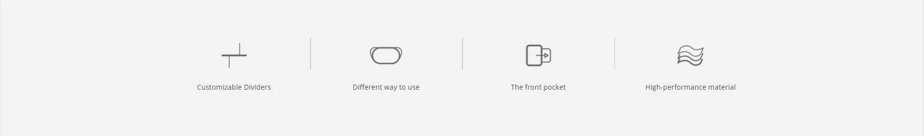 Создайте свои собственные идеальные внутренние отсеки для вашего снаряжения и повседневного использования с помощью настраиваемых и Съемных Разделителей.