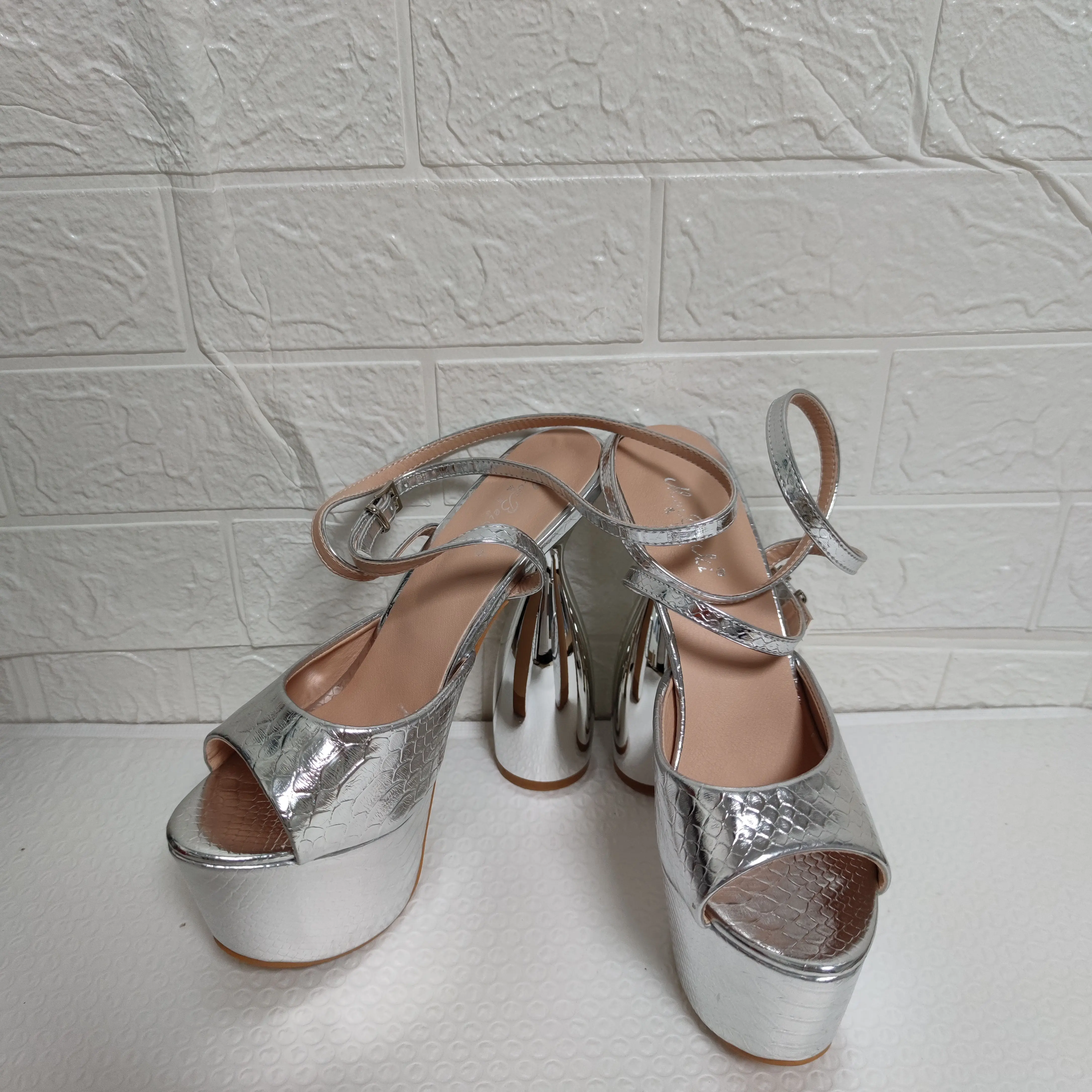 Женские босоножки на очень высоком каблуке с открытым носком и ремешком