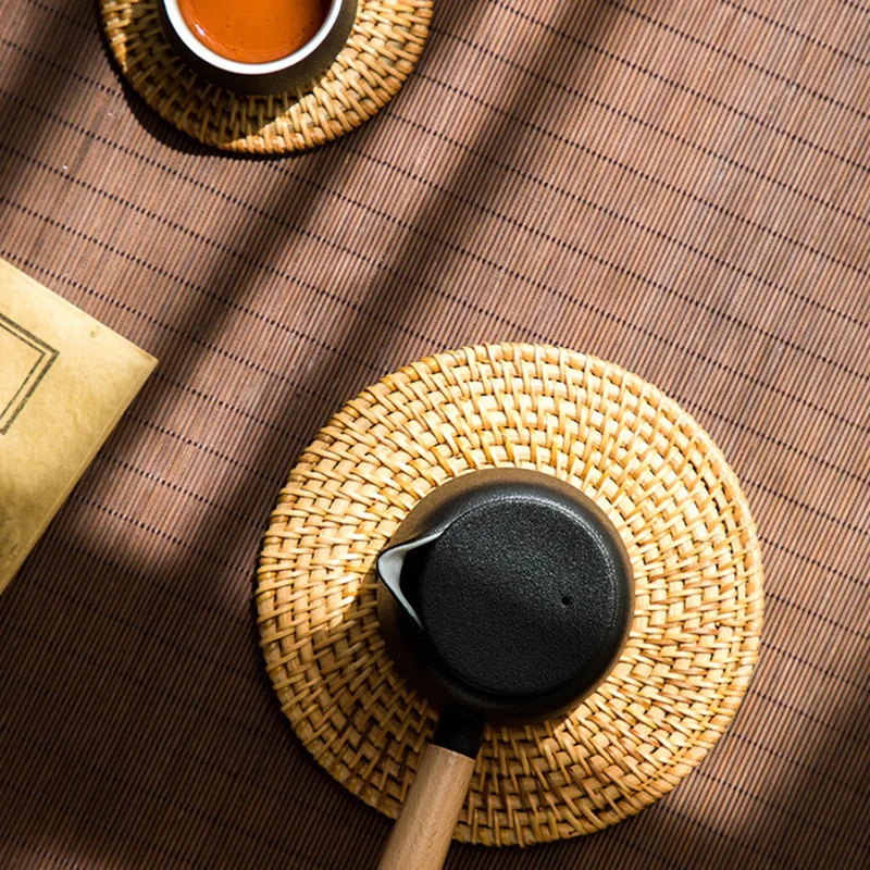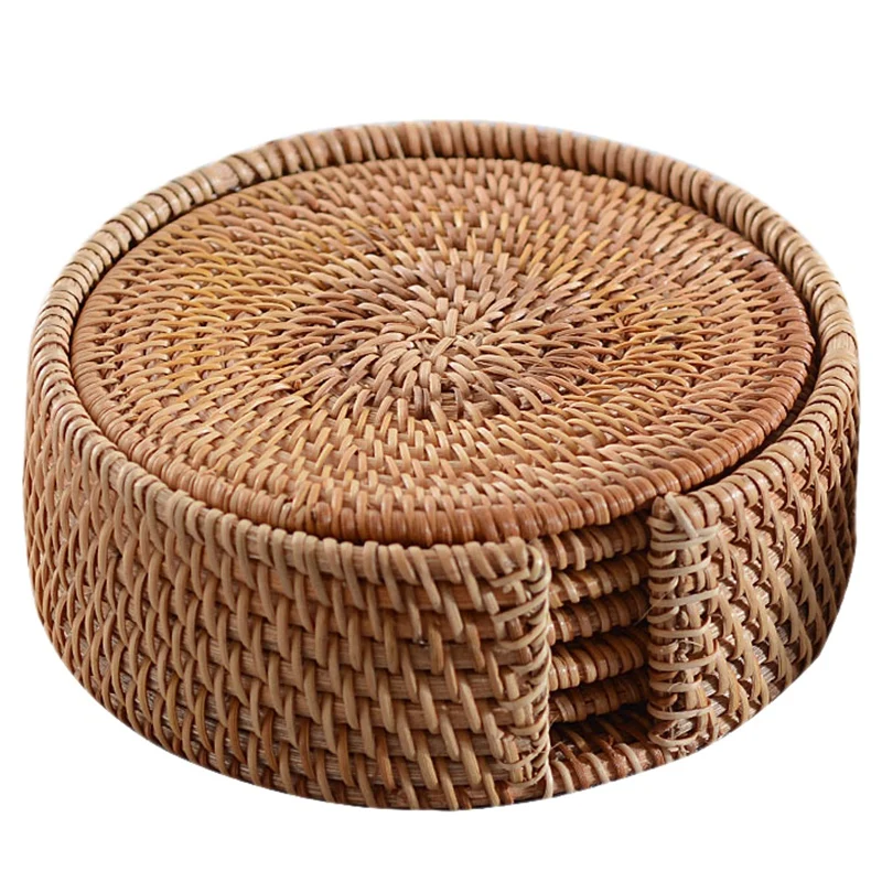 Акция! 6 шт./лот, креативные подставки для напитков, набор для чайных принадлежностей, круглые столовые приборы, коврик для посуды из ротанга, плетеные чашки, коврик 8