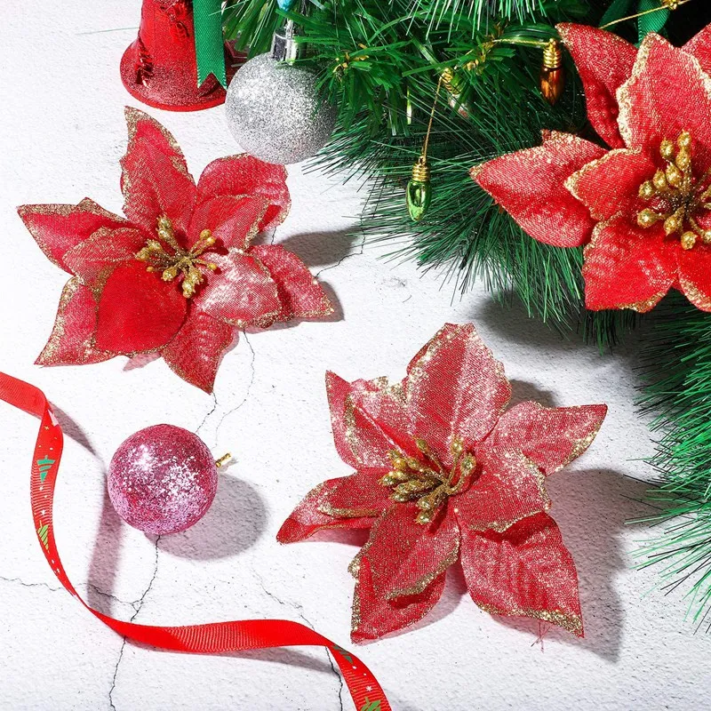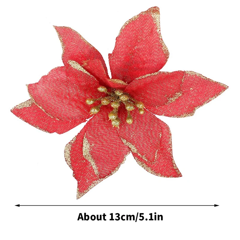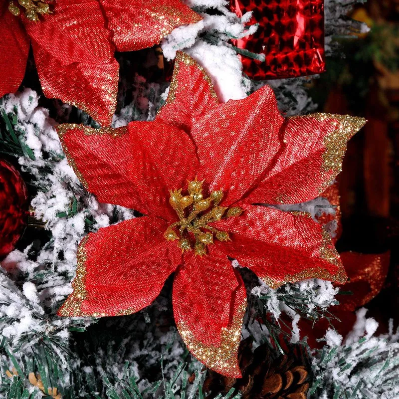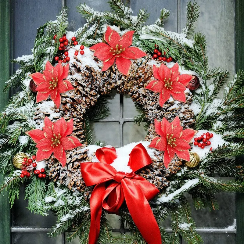 Акция! 50 шт. в упаковке, блестящие рождественские украшения Poinsettia, искусственные шелковые медиаторы с цветами, Декор, венок, гирлянда для праздника