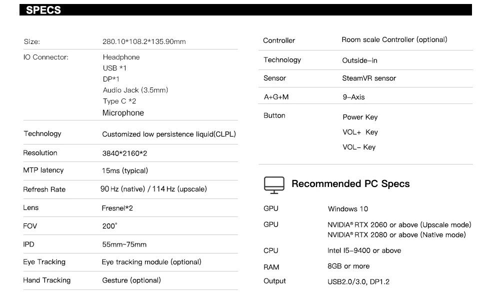 Купить комплект плеера можно ЗДЕСЬ !!! Если вы покупаете любую гарнитуру в нашем магазине, вы можете купить комплект плеера за 499 долларов без учета стоимости доставки. (включает в себя пару контроллеров поворотных кулаков + 2 * базовые станции Steam 2.0) https:/item/1005003090056878.html Свяжитесь с нами, чтобы получить код купона!Максимальная точность воспроизведения с двумя 4k дисплеями - Наш новый 8K X оснащен двумя дисплеями 4K с высочайшим уровнем качества изображения, используя настраиваемые панели CLPL с предварительной матрицей пиксела RGB.