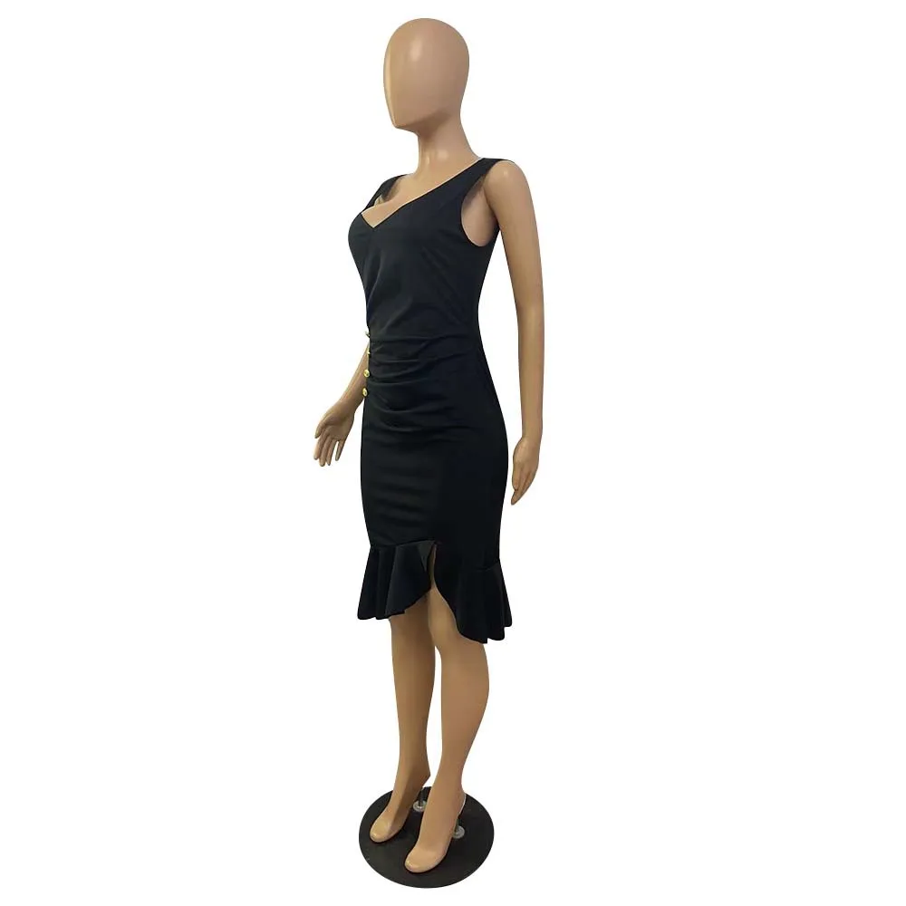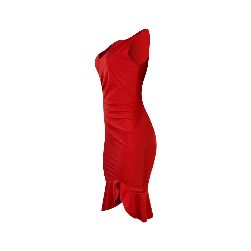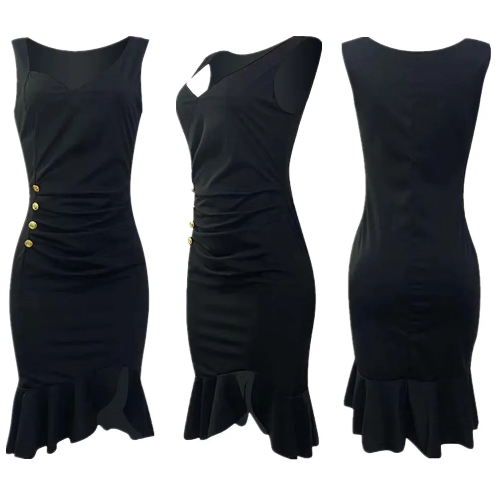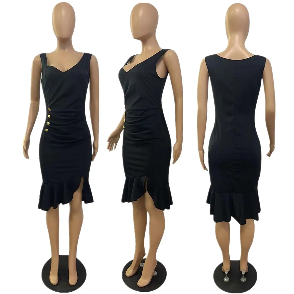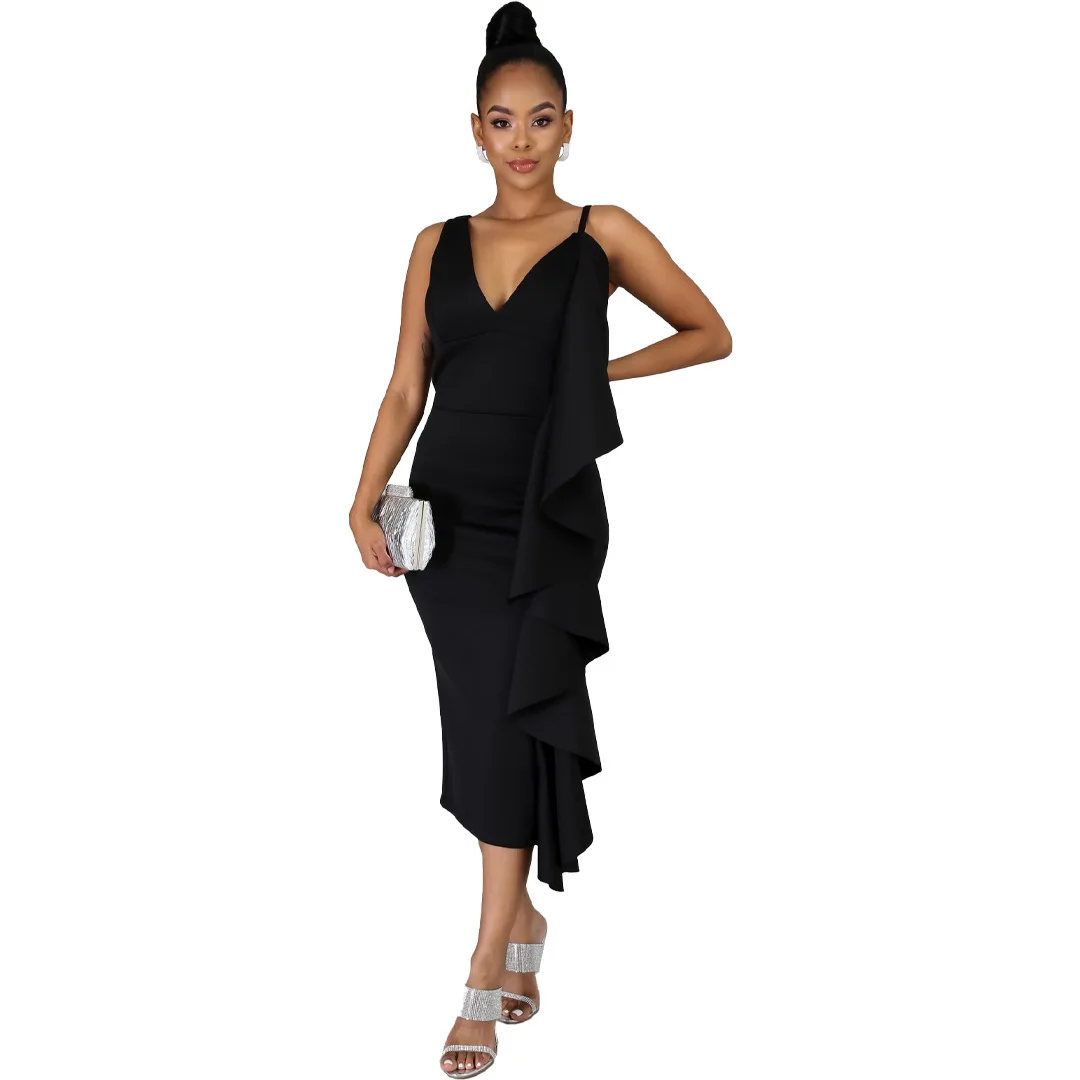 Женское платье на бретельках в африканском стиле, черная Асимметричная юбка средней длины с оборками, красная облегающая юбка-карандаш на груди, весна 2022 XLUSD 19,59/Шт/Лот 1