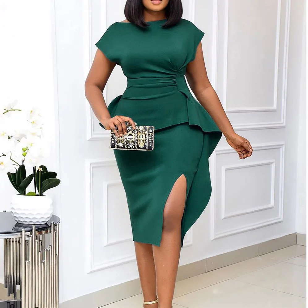 Сексуальное платье с лямкой на шее, короткий рукав, чистый цвет, тонкая упаковка, бедра, юбка-карандаш, платье средней длины, повседневное женское платье, весна 2022, африканская одеждаUSD 21,56/Шт/Лот 1