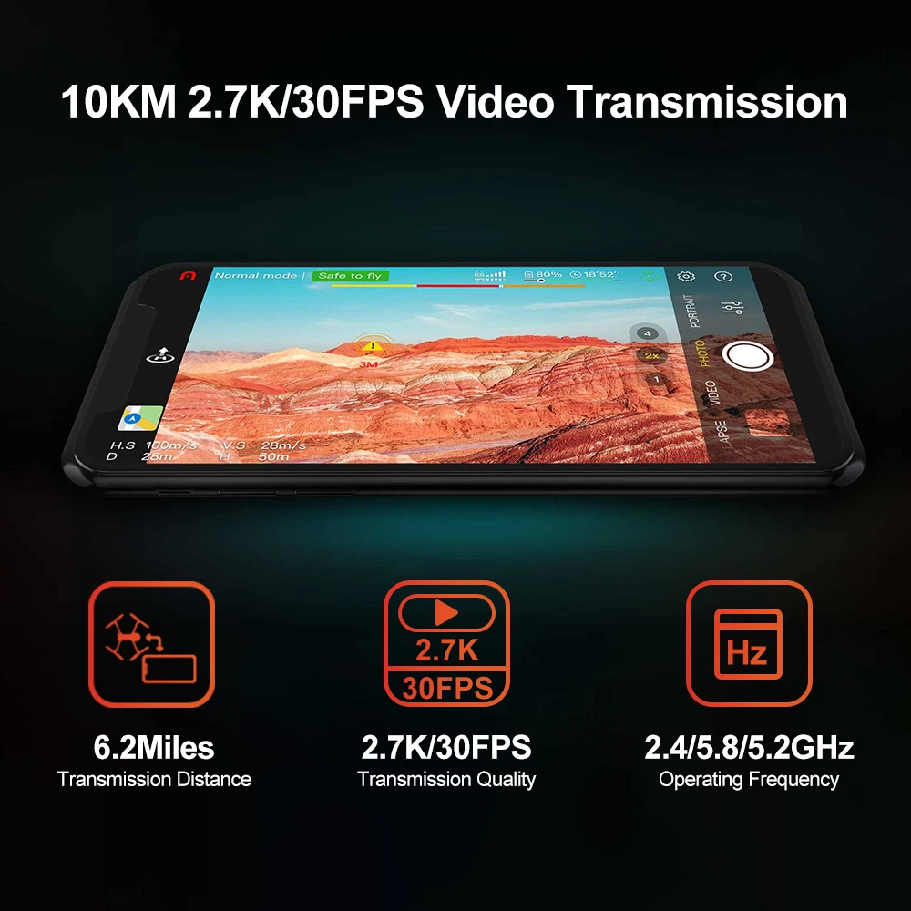 Летать посылаемый на более дальнее расстояние, сохраняя при этом четкие, четкие визуальные инструменты со всеми новыми Autel SkyLink, наши сильные передача изображения системы до сих пор, который предлагает широкий диапазон передачи 6,2 миль, качество передачи 2,7 K/30FPS, И улучшенные возможности защиты от помех, все время Передавая потрясающее видео QHD.
