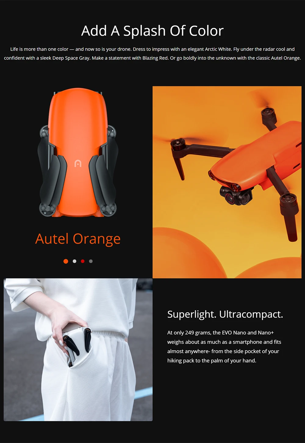 Благодаря гладкому темно-серому пространству. Сделайте заявление с блестящим красным. Или смело погрузитесь в неизвестность с классическим оранжевым Autel.