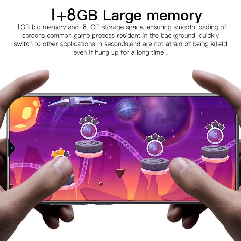 2. Оснащен памятью объемом 1 Гб + 8 Гб, которая может быть расширена до 128 ГБ, чтобы гарантировать плавную загрузку обычных игровых процессов на экране в фоновом режиме, И быстро переключиться на другие приложения в течение нескольких секунд, даже если он висит в течение длительного времени, вы не боитесь падения