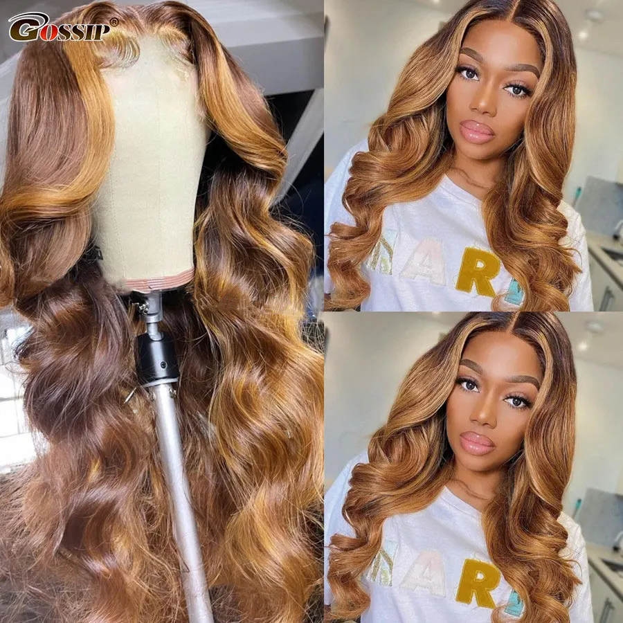 Highlight Wig Human Hair Body Wave Lace Front Wig Pre Plucked Colored Human Hair Wigs For Black Women Rmey Wig T Part Wig #4/27