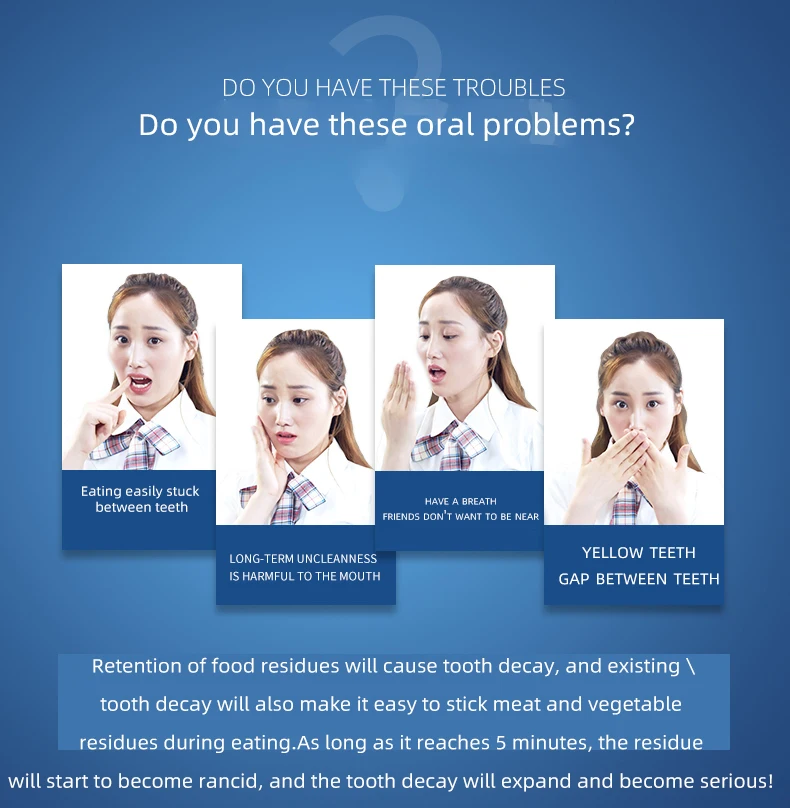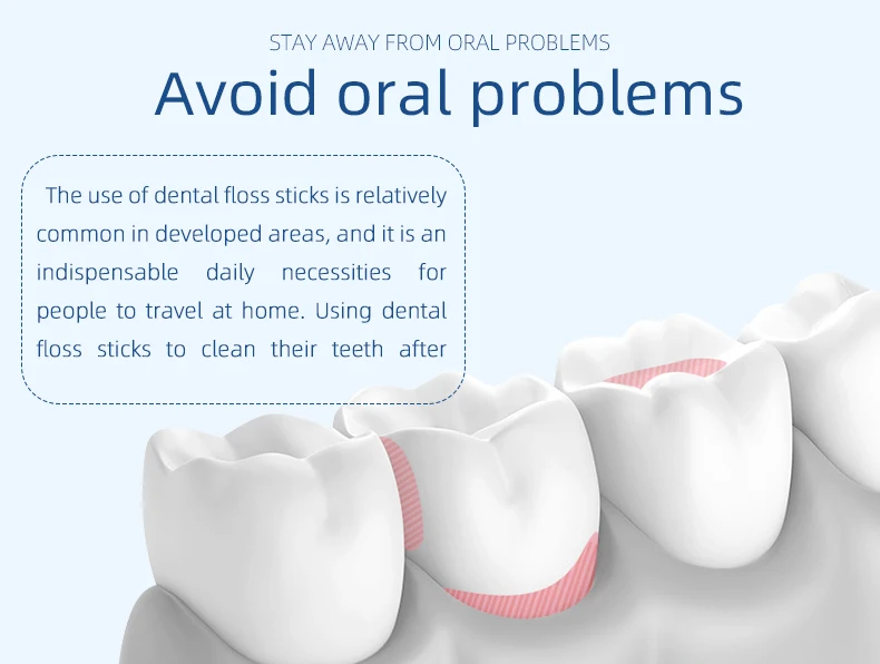 Это помогает удалить налет, который трудно удалить. Мы используем зубную нить каждый день, чтобы помочь сохранить ваши десны и зубы здоровыми