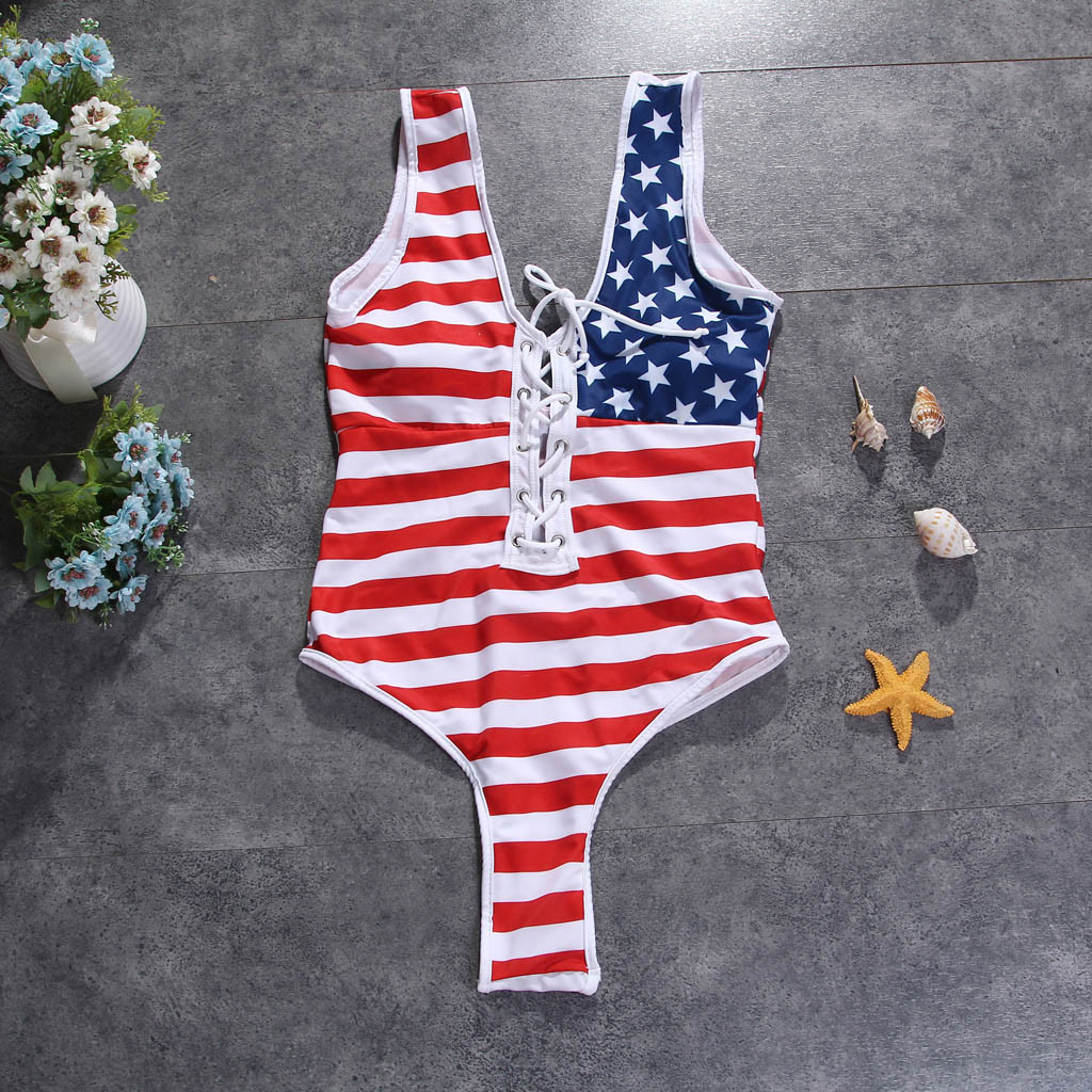 Женский купальник-монокини с американским флагом, 4-of-July