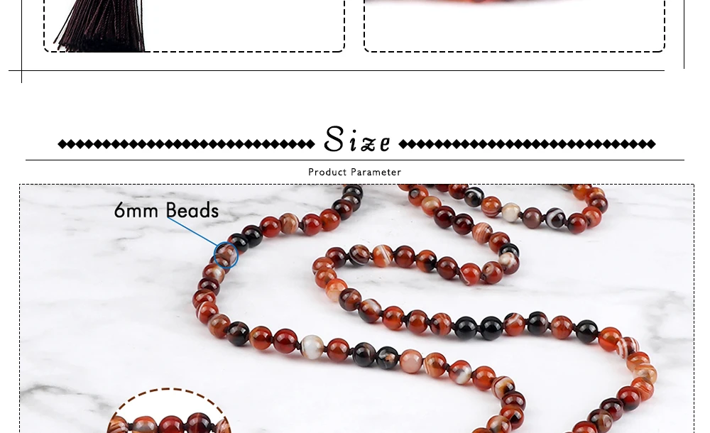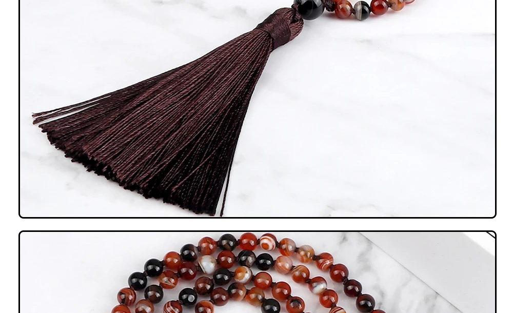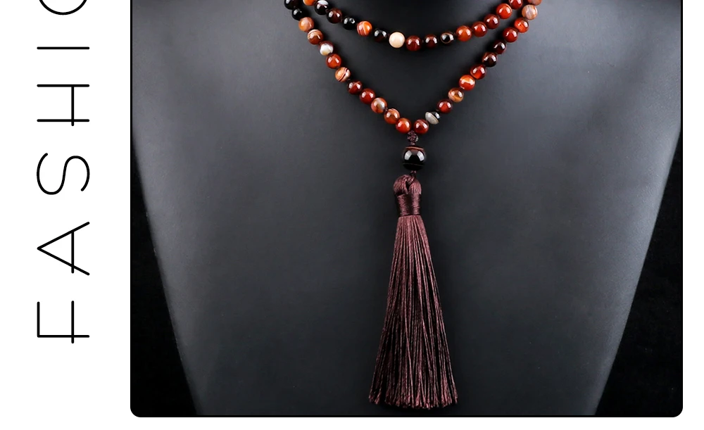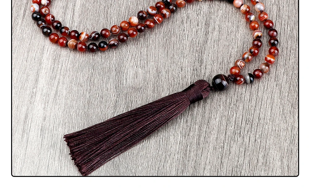 Прямая поставка 108 бусин ожерелье для мужчин натуральный камень 6 мм красный полосатый агат четки буддийский Йога Медитация женские ожерелья богемные кисточки ювелирные изделия подарок для влюбленных