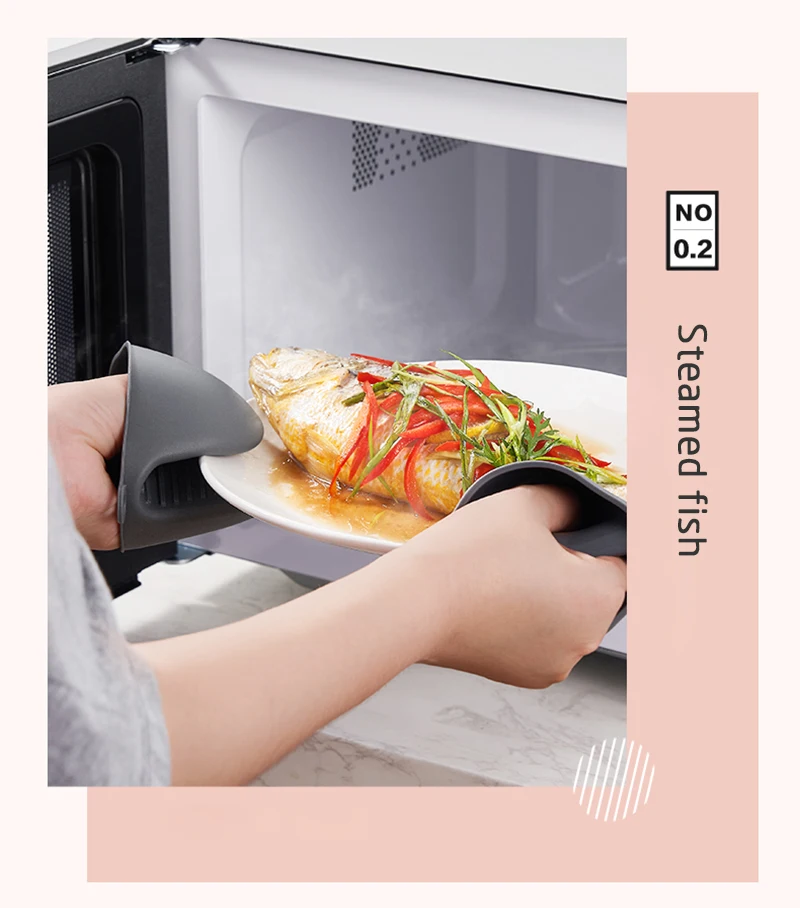 Micca 2pcs Microwave Oven Gloves Silicone Heat Insulation Anti-slip Gloves Household Bowl Clips Pot Holder Kitchen Baking Tools