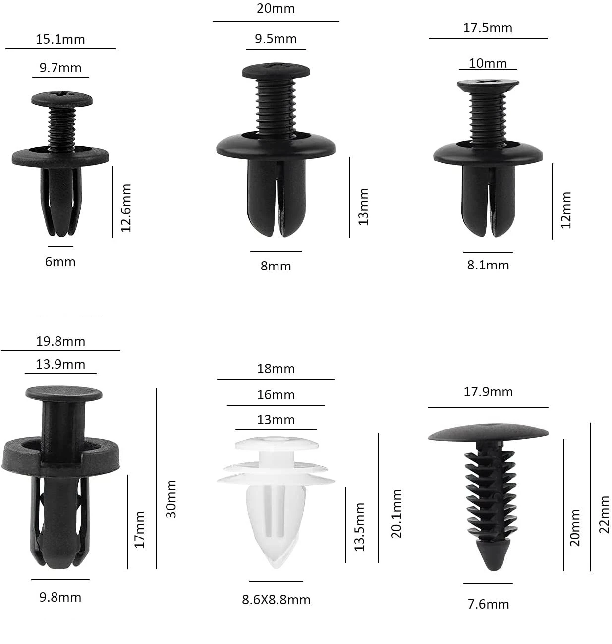 Не нужно беспокоиться о потере или повреждении крепежных деталей. Все необходимые фиксаторы для точной замены старых и сломанных фиксаторов.