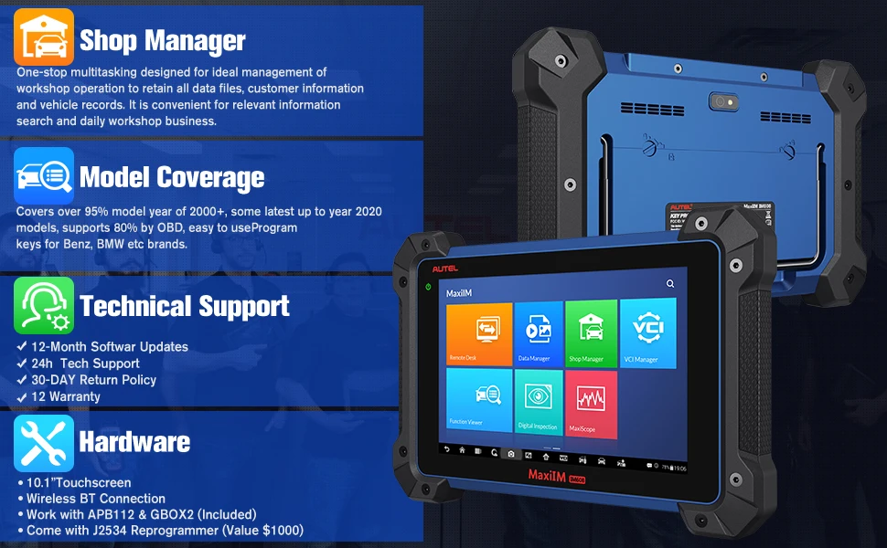 1. Not work alone, but works together with any of the Autel Diagnostic Device i.e MaxiIM IM608, Autel MaxiIM IM508, and MX808IM