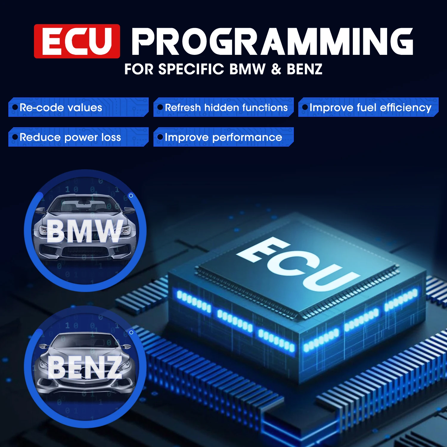 -Complete capabilities for codes, live data, active test, ECU information, adaptation, matching, coding etc.