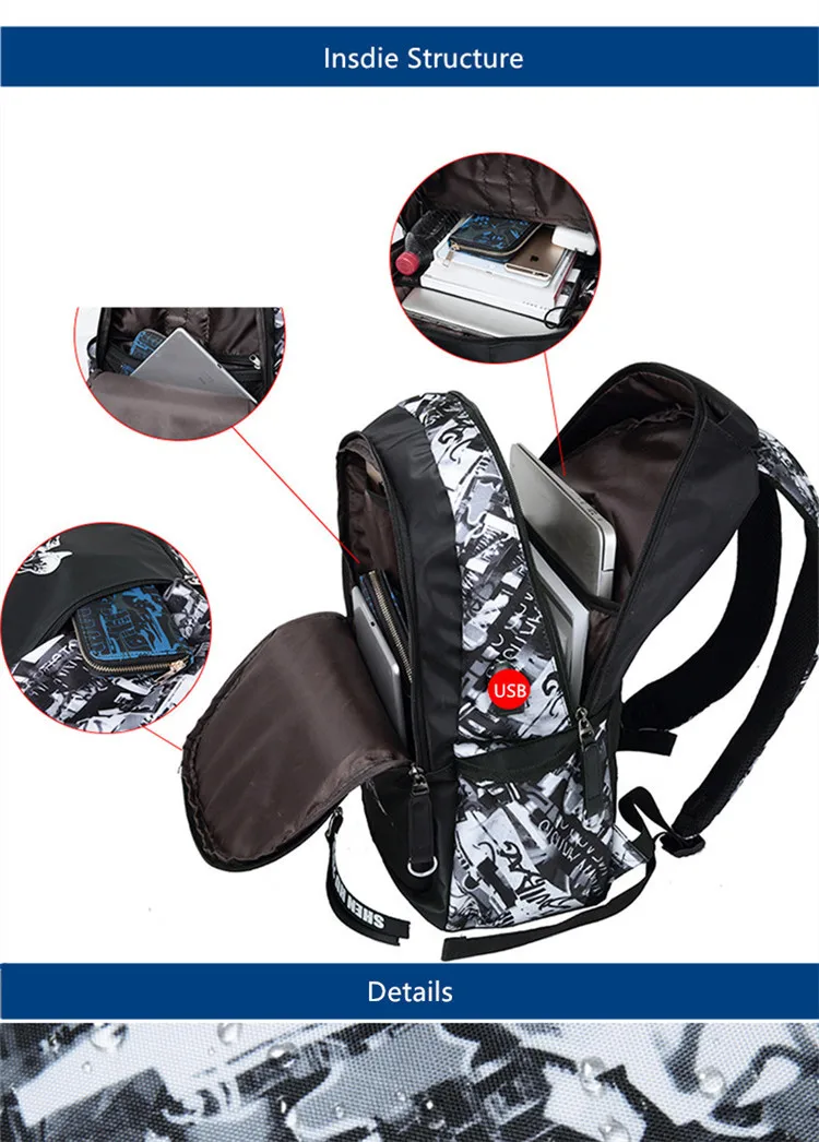Мужской рюкзак с usb-зарядкой, студенческий рюкзак для ноутбука, Прямая поставка