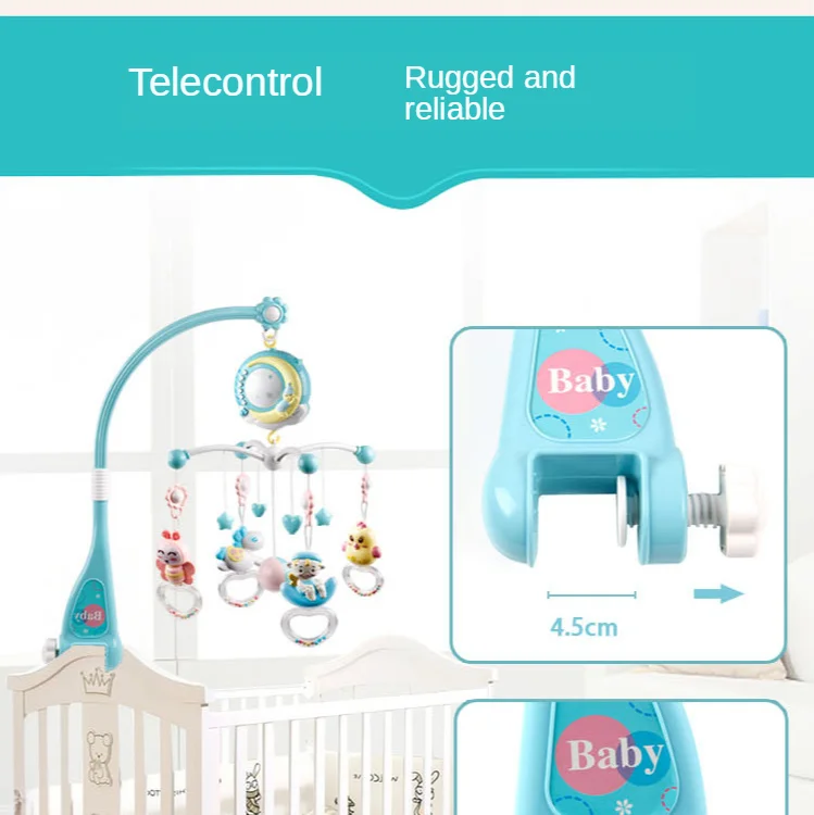 3. Простота в использовании: Легко собирается и крепится к кроватке. С пультом дистанционного управления, он может управлять всеми функциями музыкальной шкатулки.