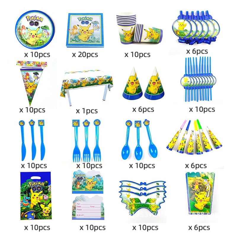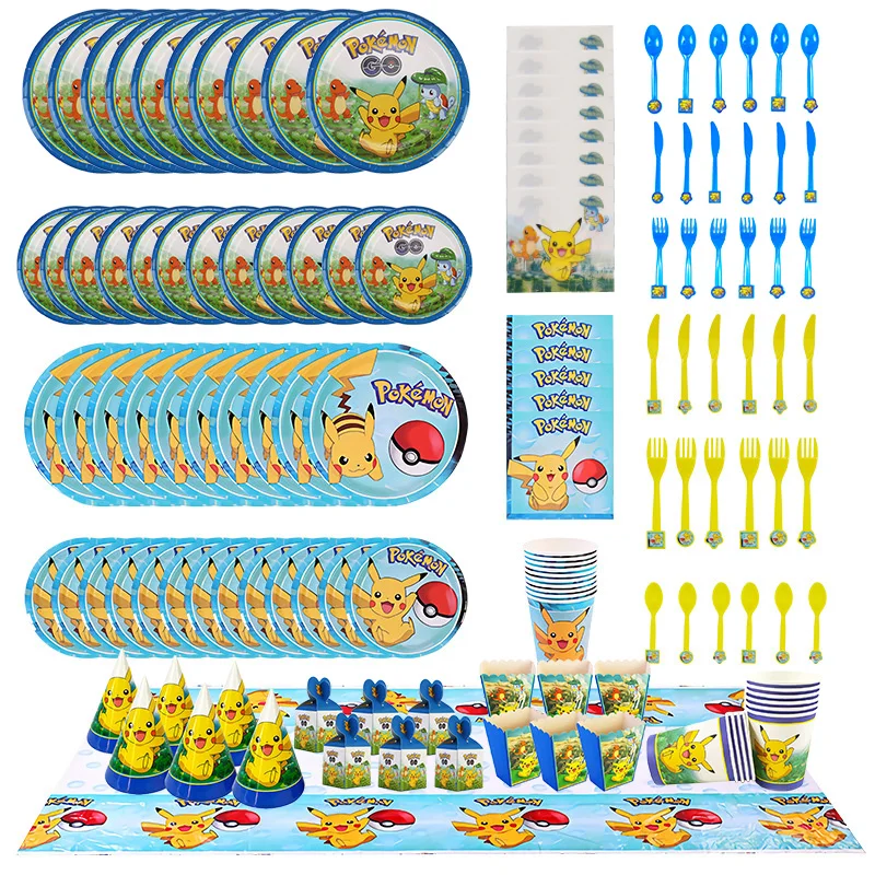 Мультфильм Пикачу Покемон тематический день рождения украшения воздушный шар "Покемон" наборы посуды бумажные тарелки чашки, ребенок, душ принадлежности