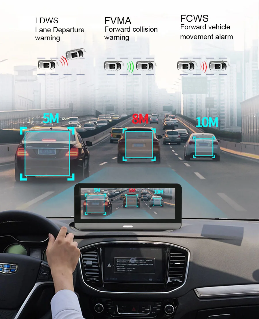 GPS навигация, Автомобильный видеорегистратор, монитор парковки, Bluetooth hands-free, WiFi, fm-передатчик, смарт-устройство с ОС Android 5,1, ADAS,4G интернет-серфинга, удаленный монитор, g-сенсор.